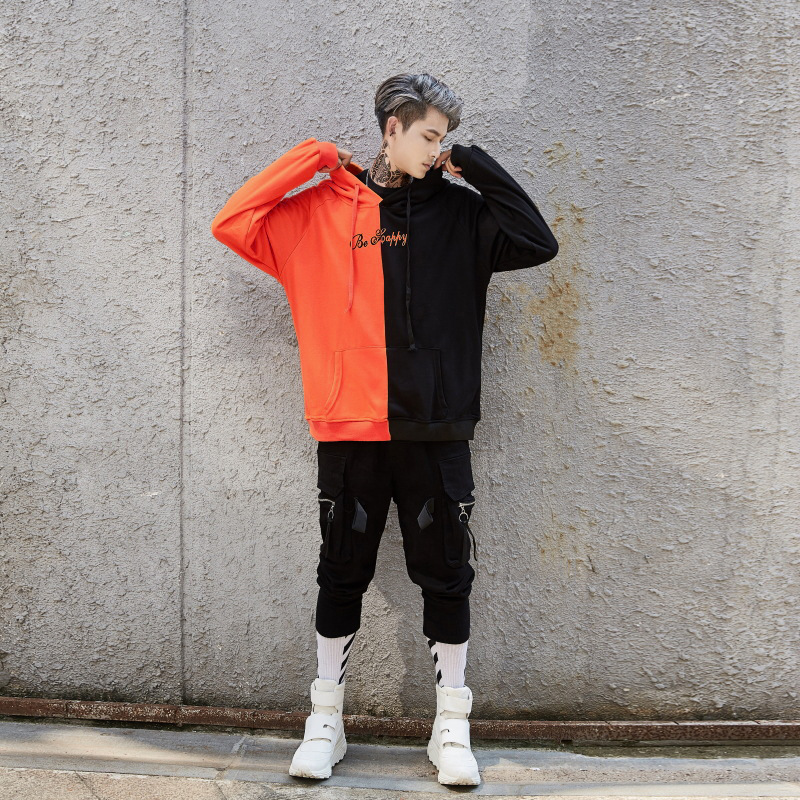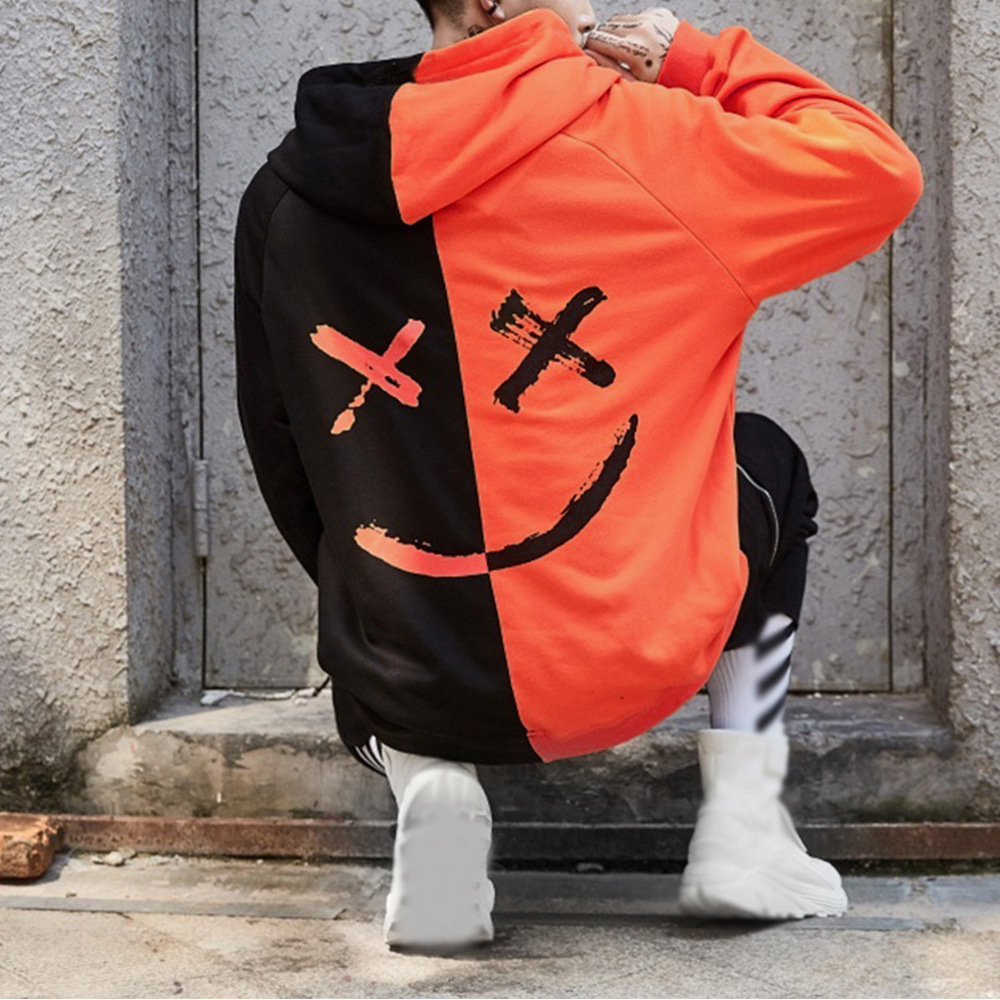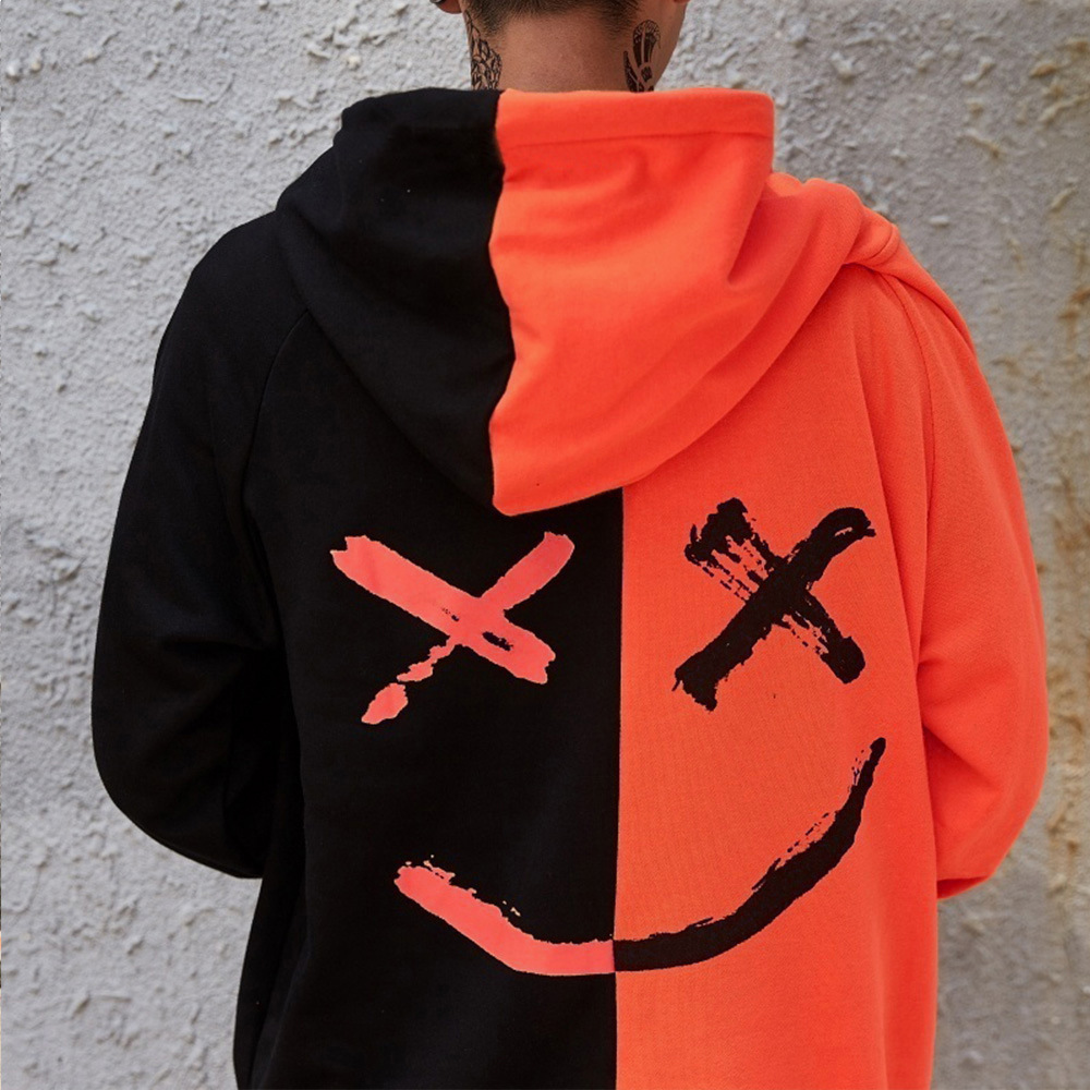 국경 간 대외 무역 남자의 봄과 가을 레저 패션 컬러 매칭 웃는 얼굴 스웨터 남자의 긴 소매 스포츠 후드 재킷 남자 코트