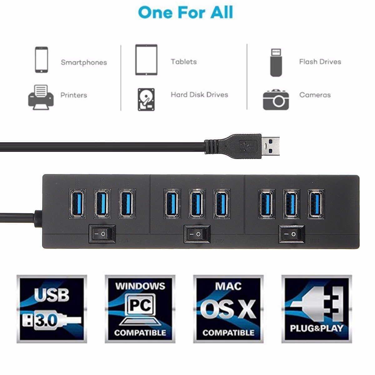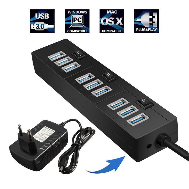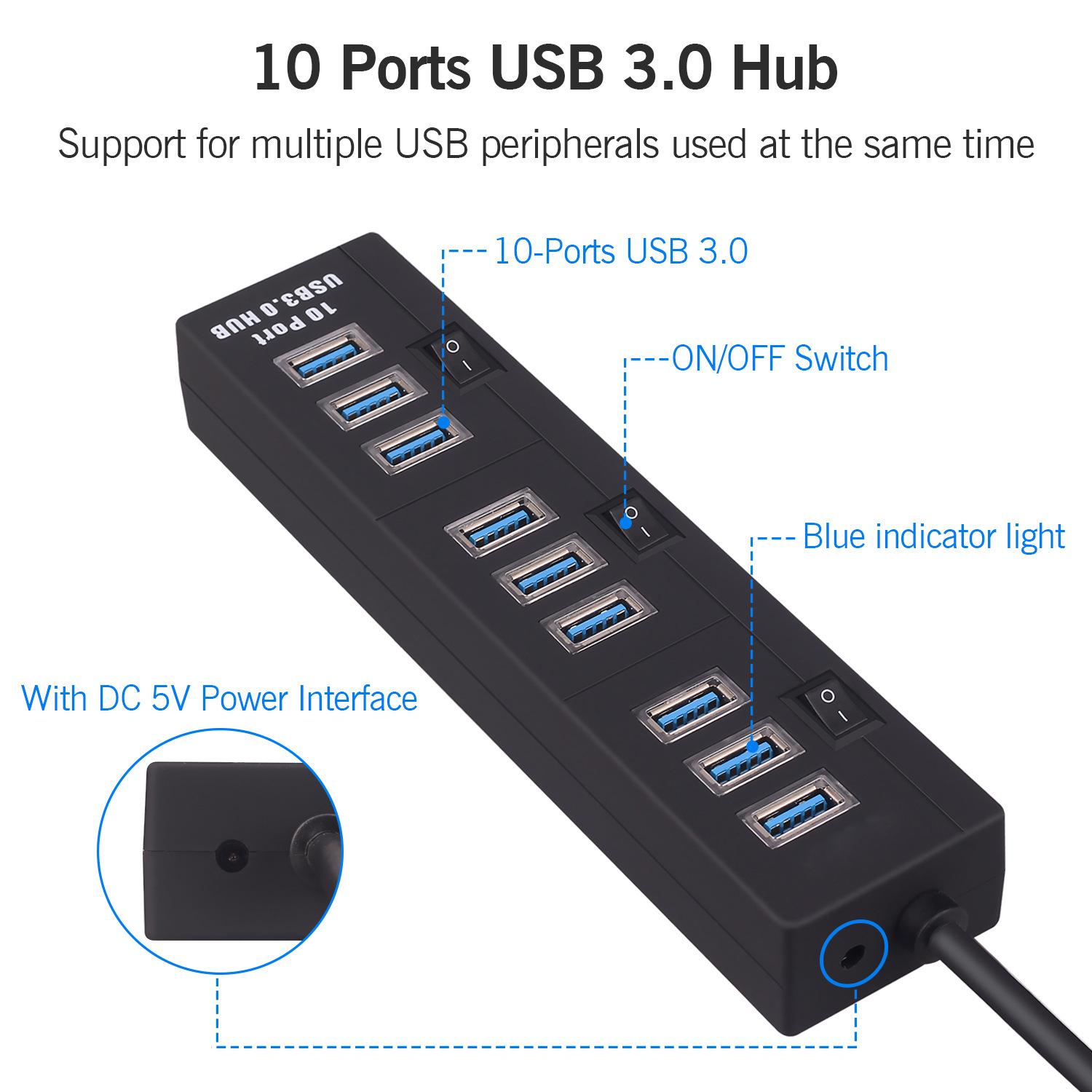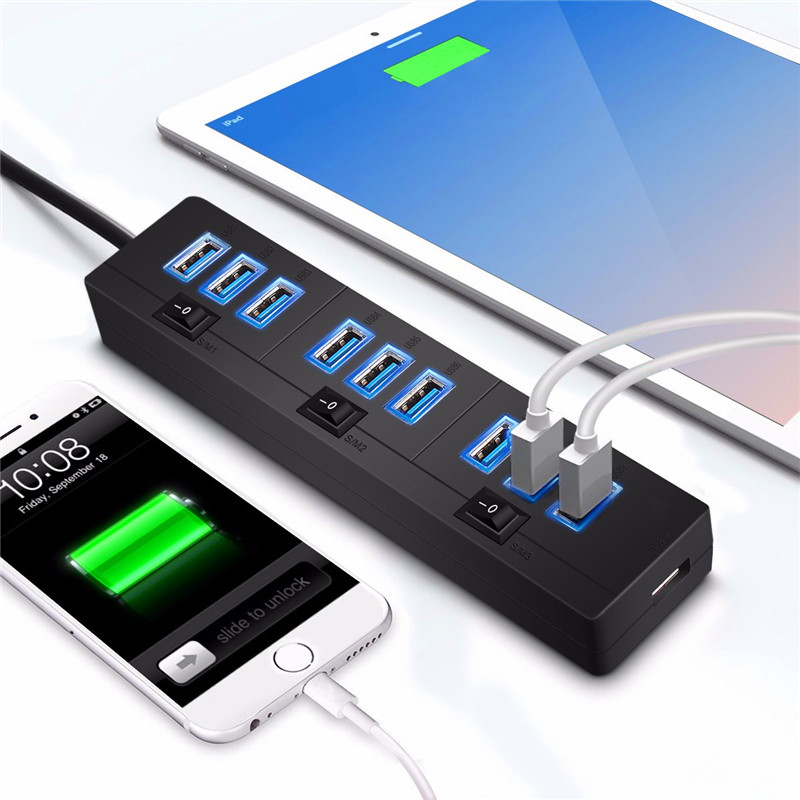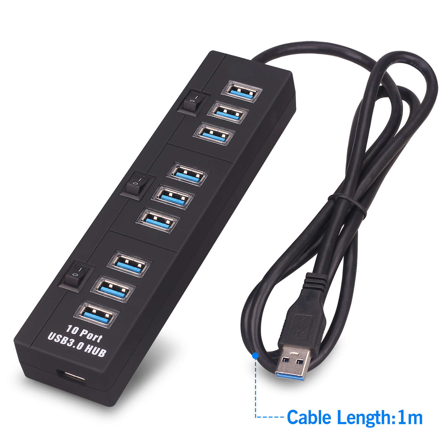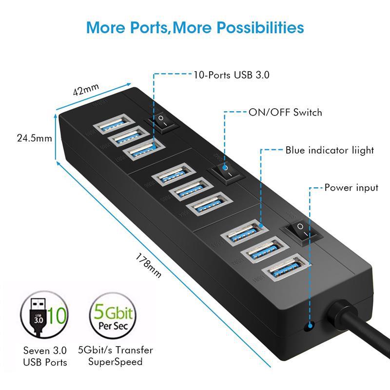 产品名称 :A27 工厂高速10口 USB 3.0 HUB 集线器 三开关一拖十5Gdps扩展器