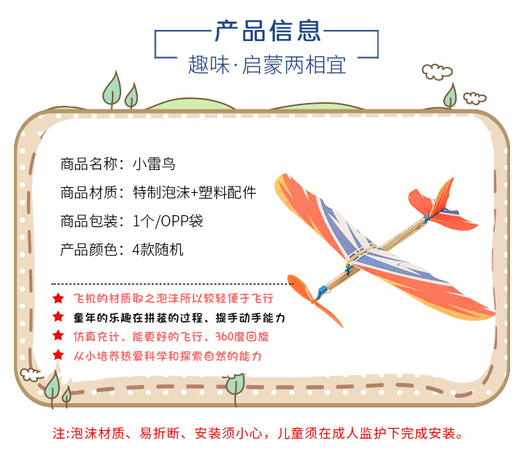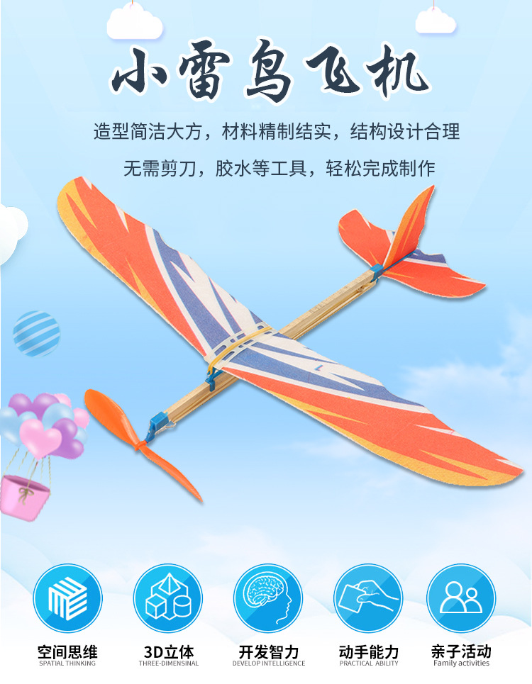 소형 레이버드 고무줄 동력 비행기 모형 폼 글라이더 수제 소형 제작 교육용 어린이 교구