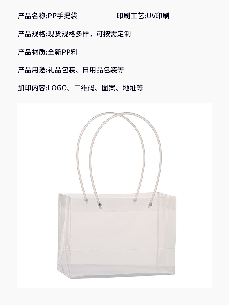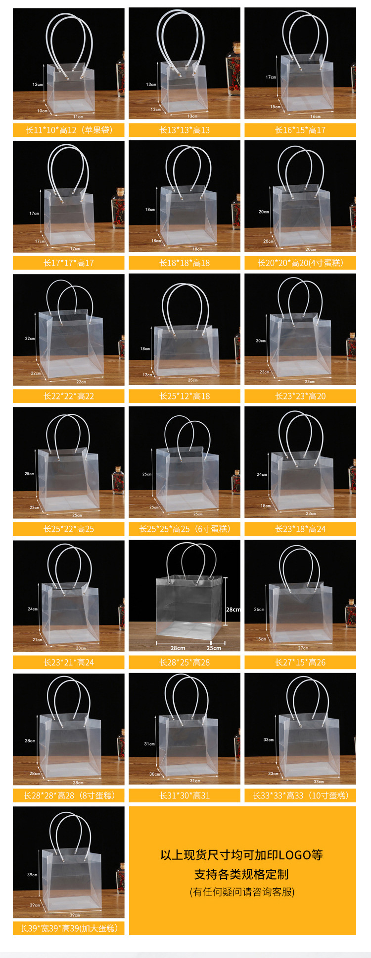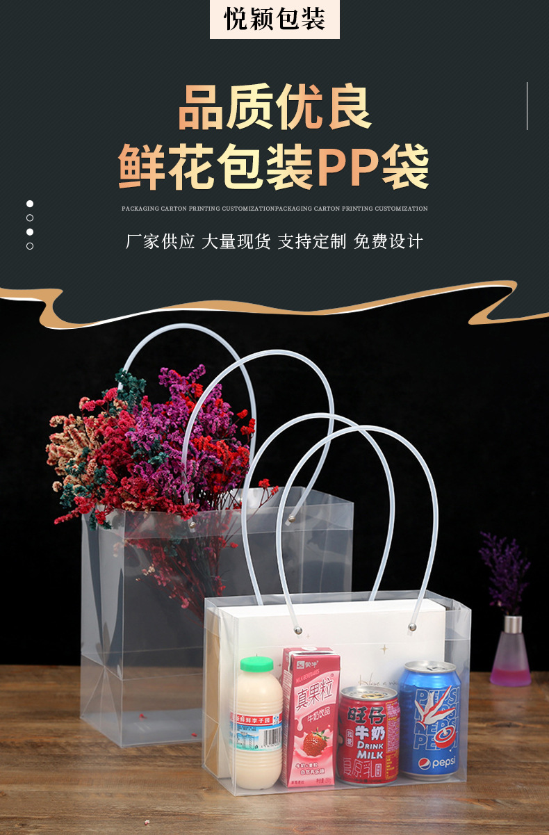 꽃 포장 PP 투명 선물 가방 꽃 핸드백 중국 발렌타인 데이 핸드백 축제 및 기타 케이크 선물 가방스토어 가기