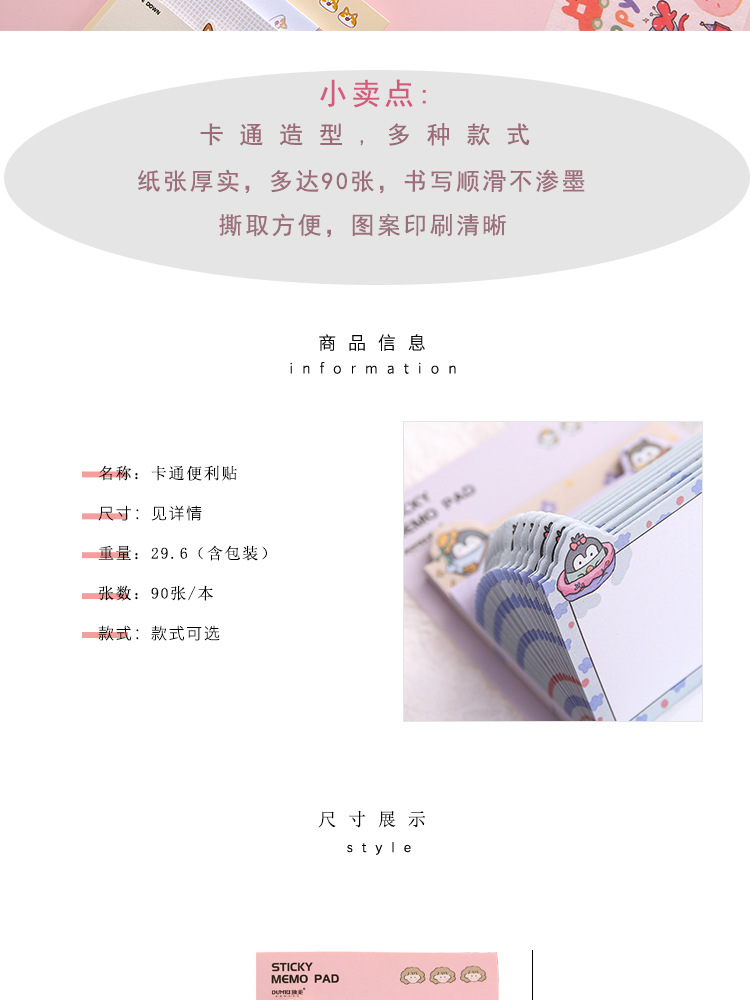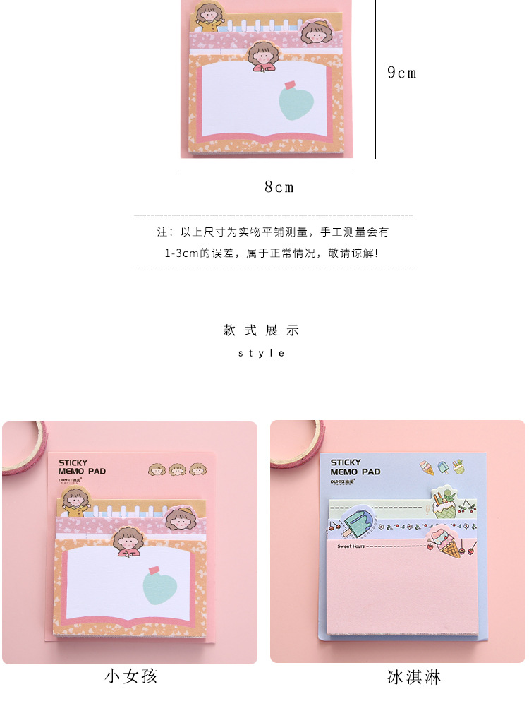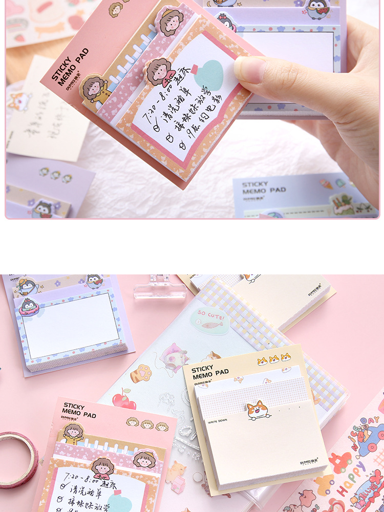 • 귀여운 캐릭터 3-in-1 점착 메모지 / 색상 혼합, 색상 랜덤 발송 (1개)