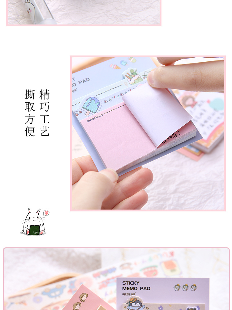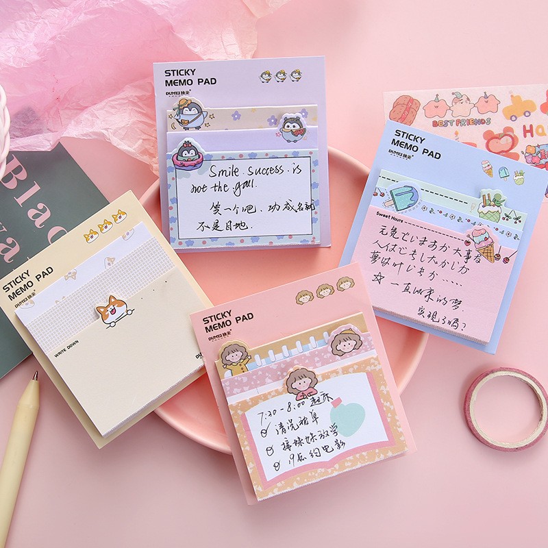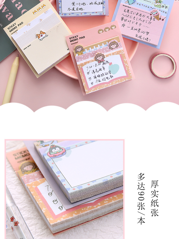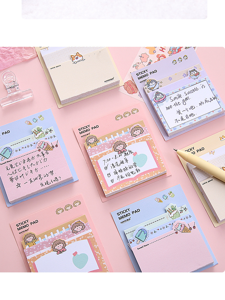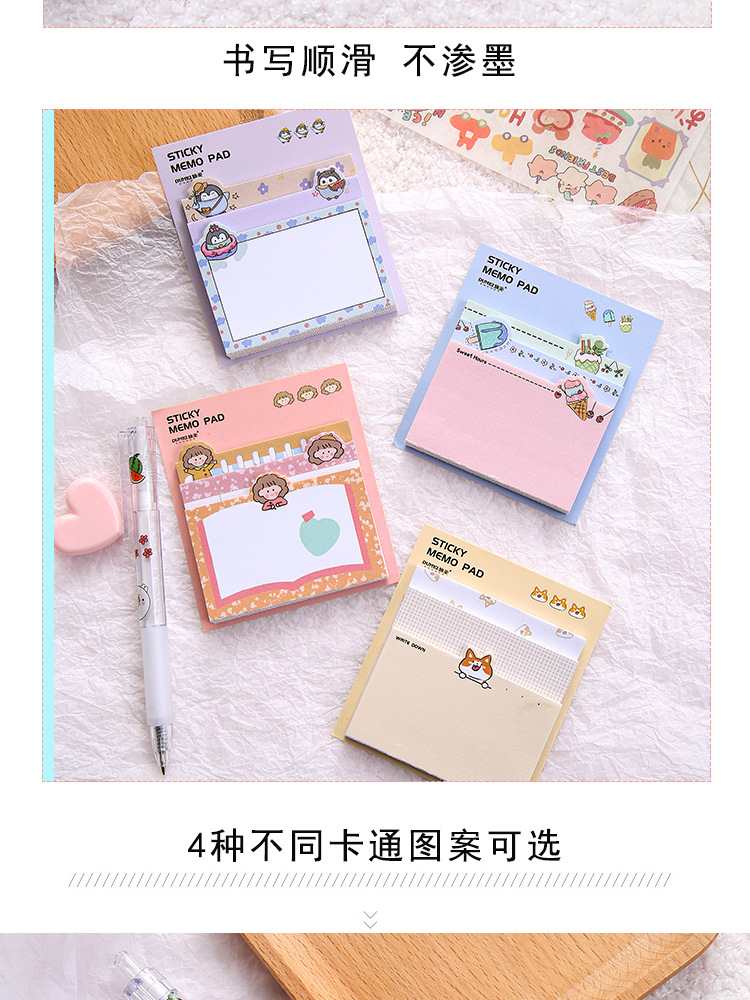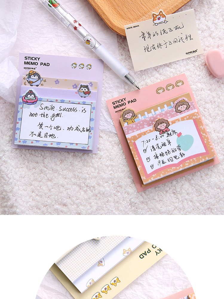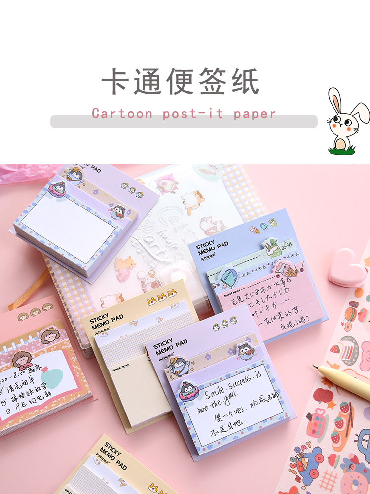 맞춤형 인스타 감성 3단 귀여운 만화 스타일 노트, 비접착식 오리지널 메시지지 도매스토어 가기