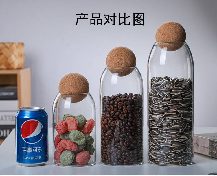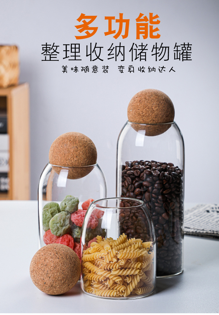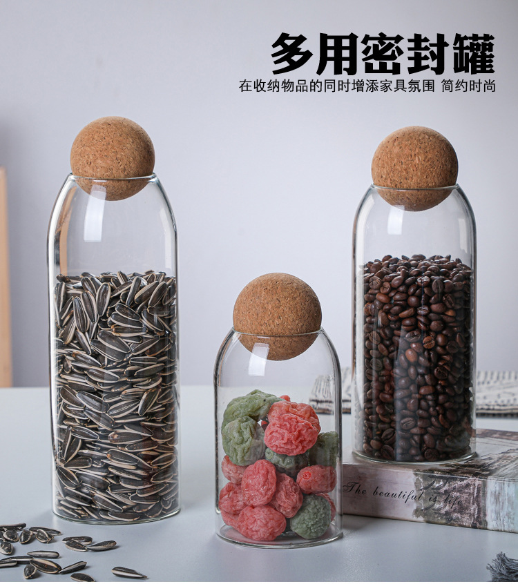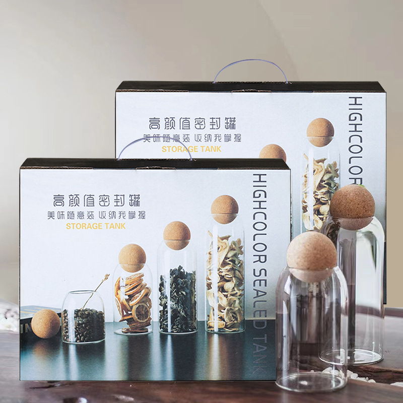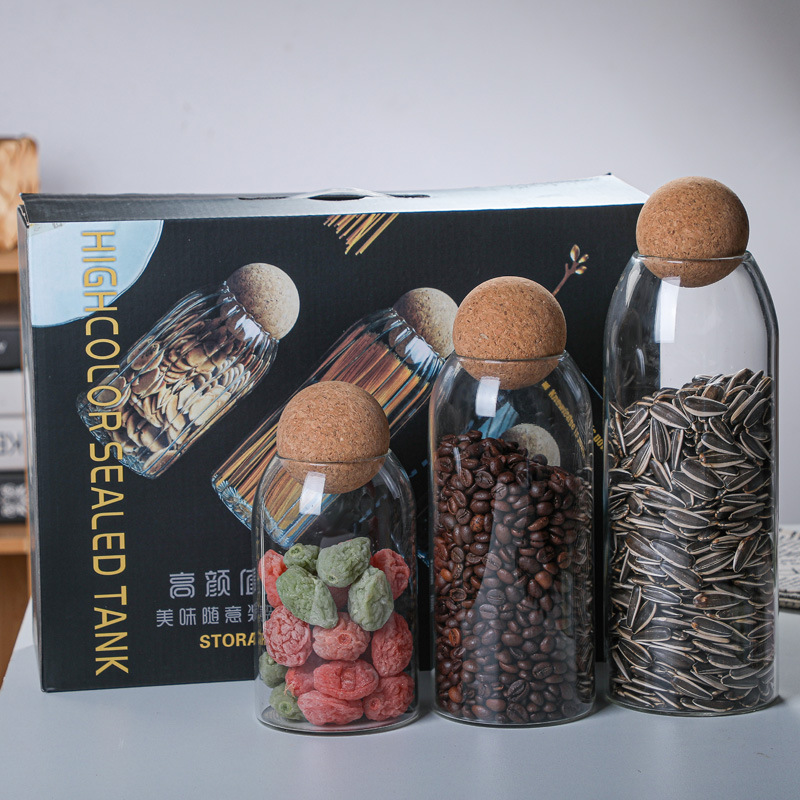높은 붕규산 유리 밀봉 캔 가정용 커피 콩 보관 상자 주방 시리얼 코르크 차 캔 선물 상자