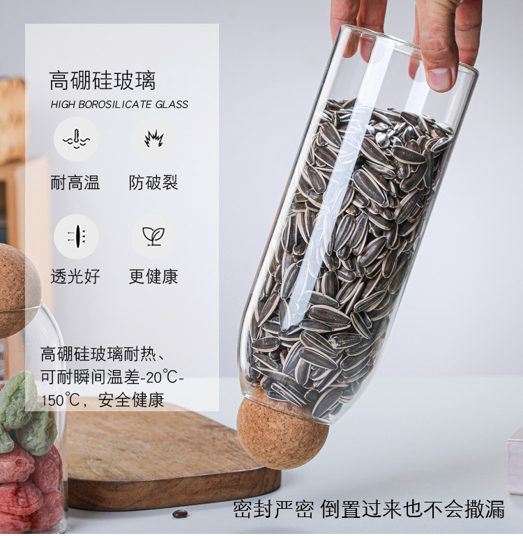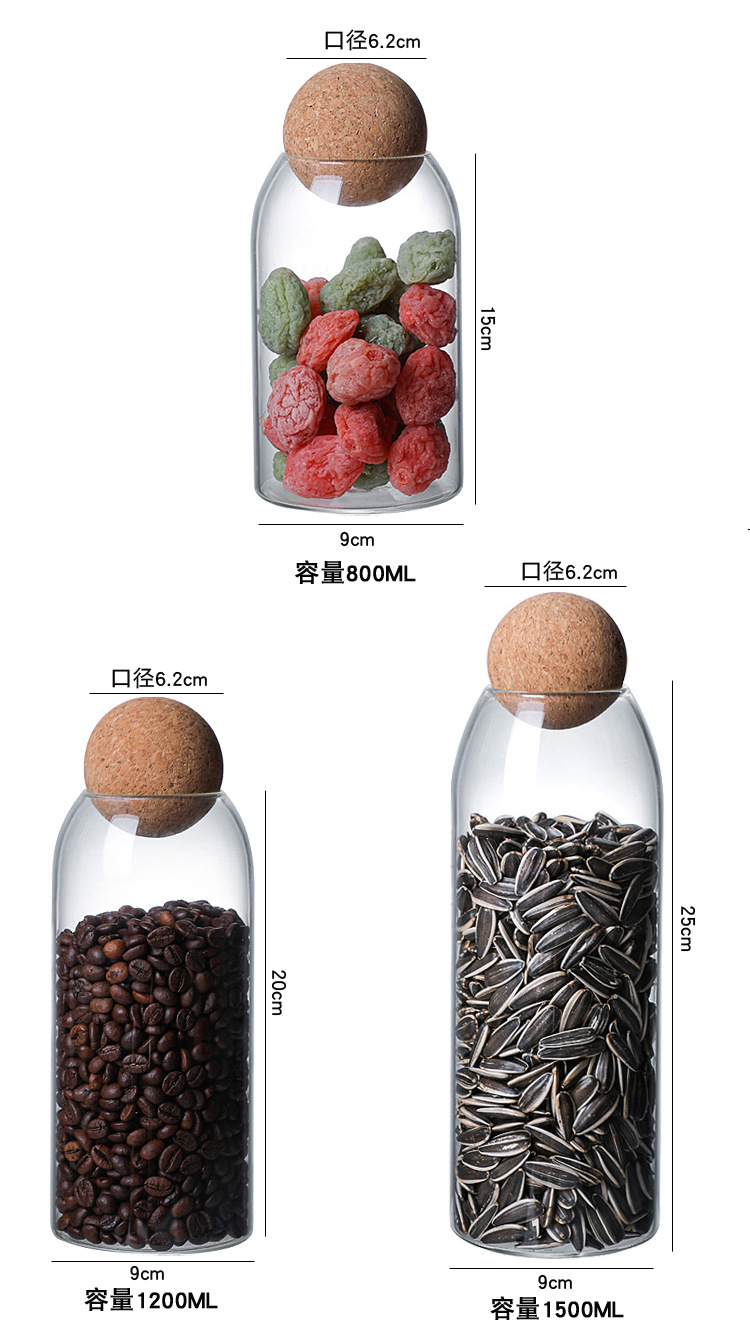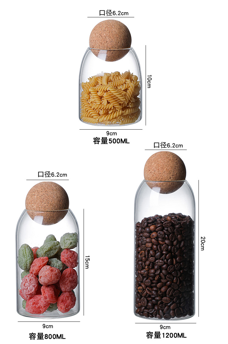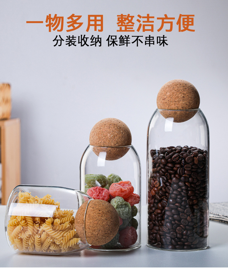 높은 붕규산 유리 밀봉 캔 가정용 커피 콩 보관 상자 주방 시리얼 코르크 차 캔 선물 상자