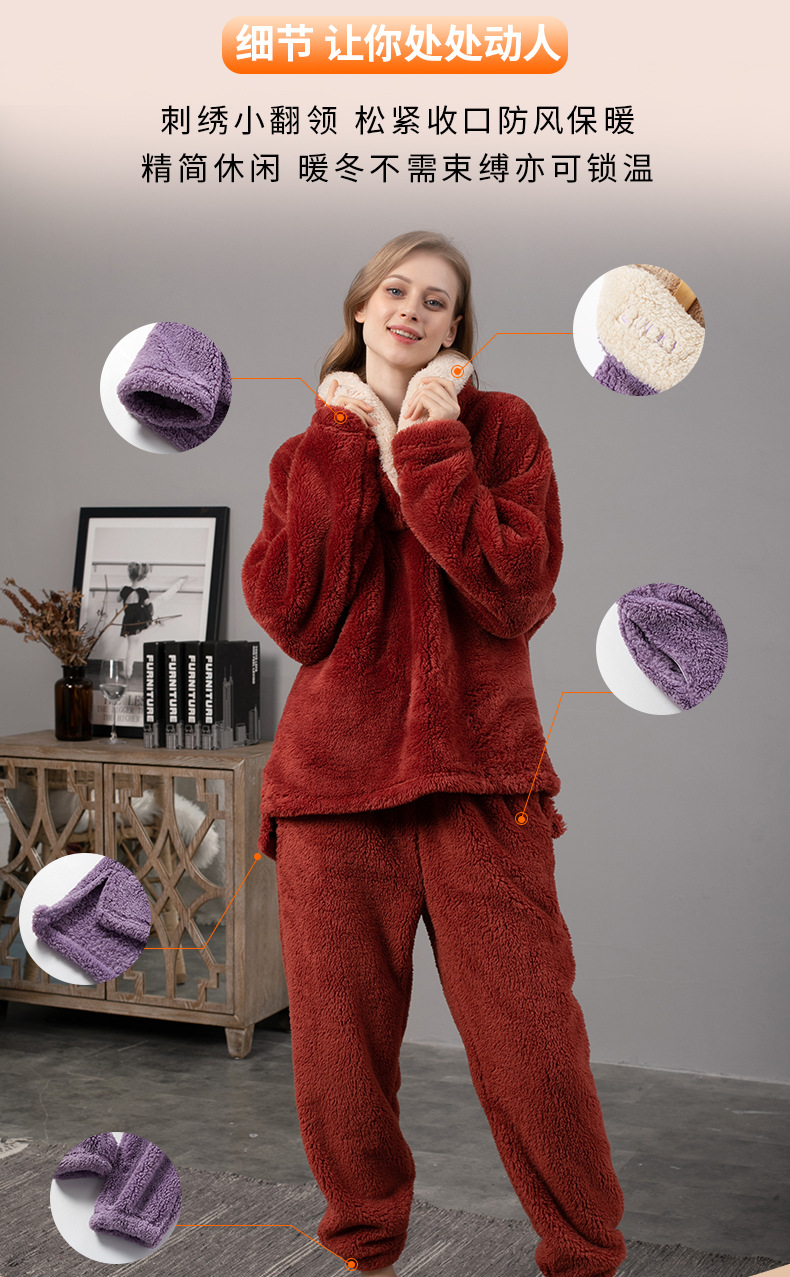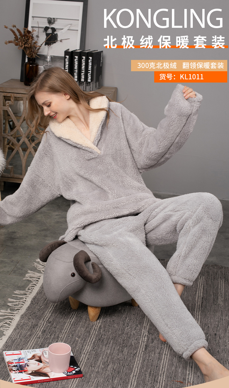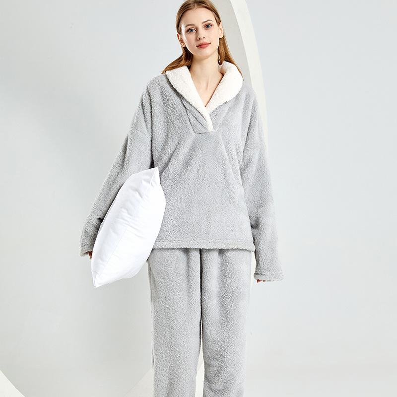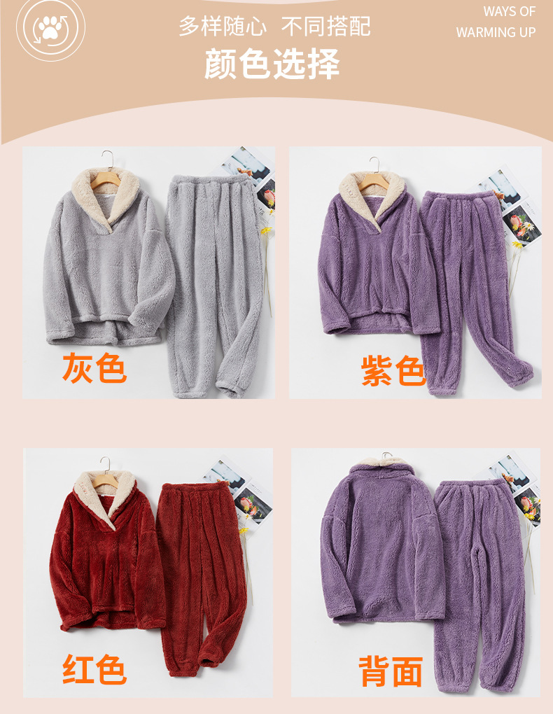 국경 간 겨울 잠옷 여성 산호 양털 잠옷 두꺼운 플러스 사이즈 홈웨어 여성 옷깃 느슨한 숙녀 잠옷 세트