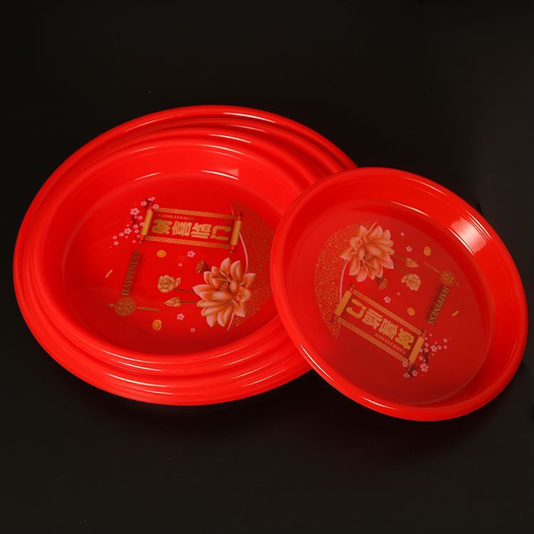 Lehe 전통 플라스틱 제품 레드 플라스틱 플레이트 웨딩 페스티벌 용품 레드 두꺼운 하이 사이드 플레이트스토어 가기