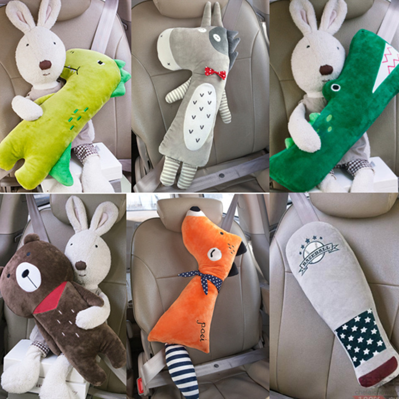 韩国设计汽车安全带护肩卡通可爱抱枕安全带套绒布娃娃批发韩国儿童汽车抱枕安全带保护套固定器安抚毛绒抱枕护肩套睡觉靠枕