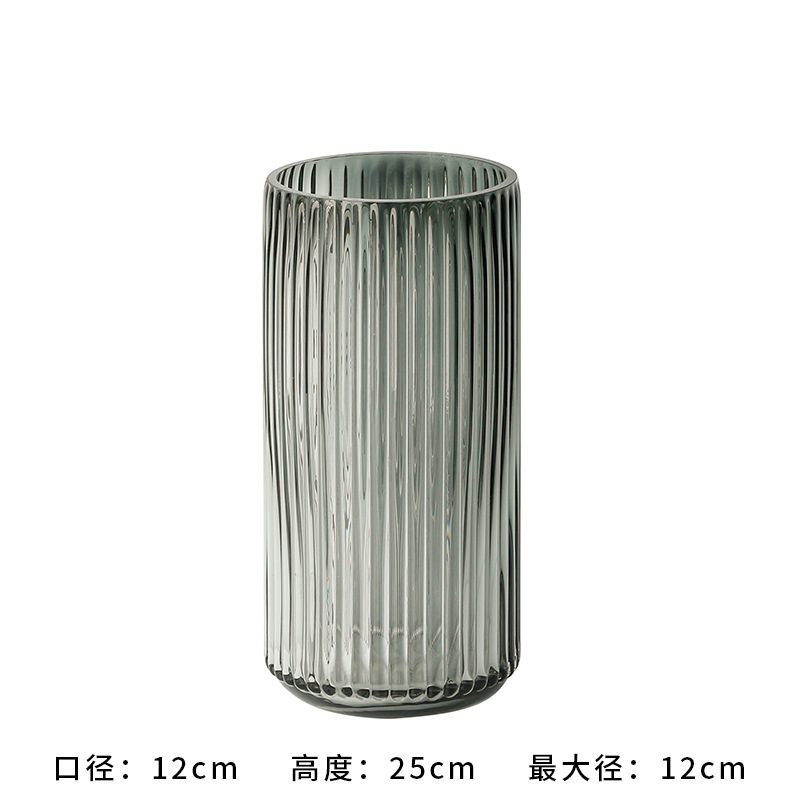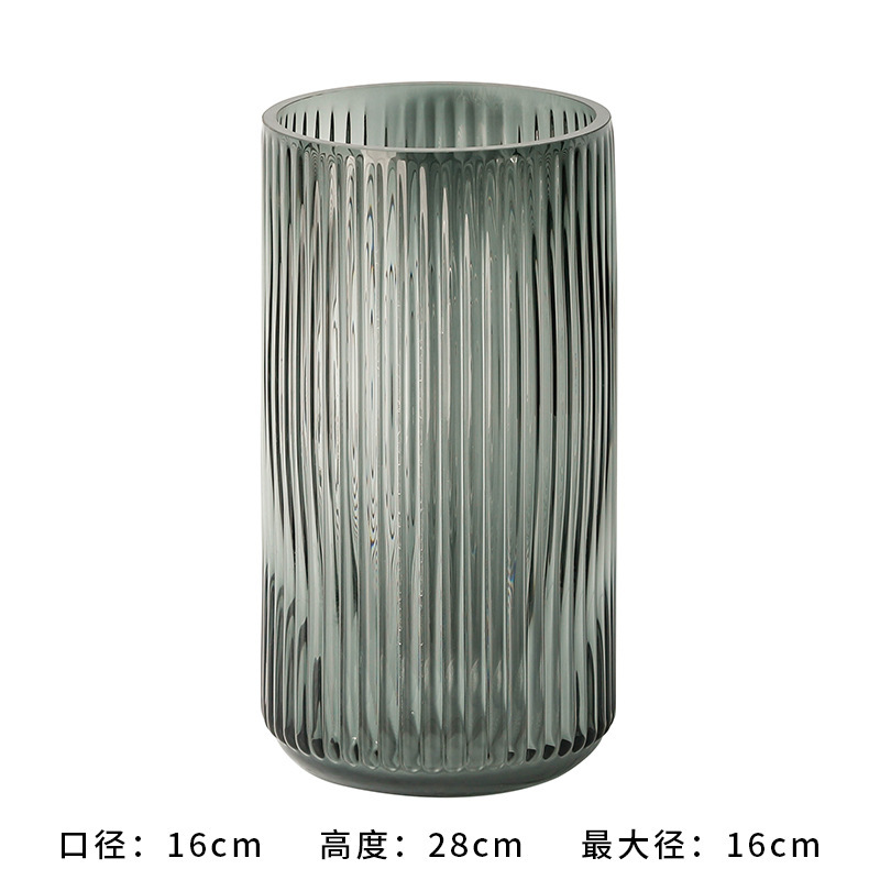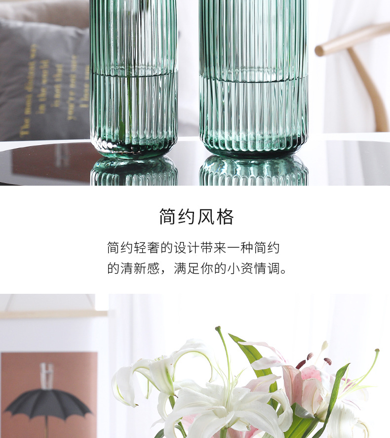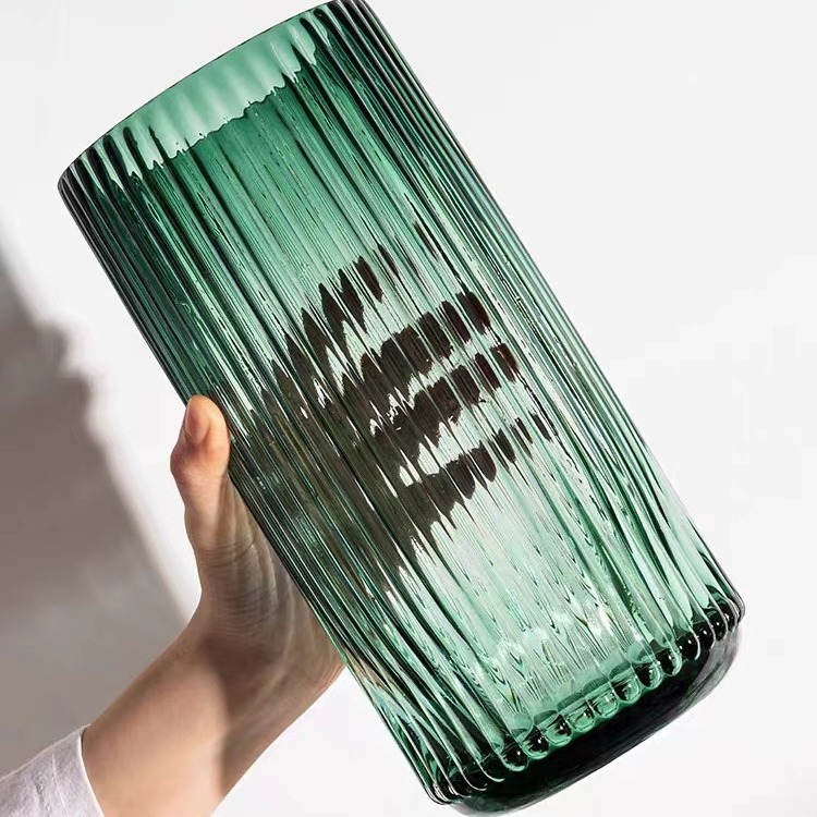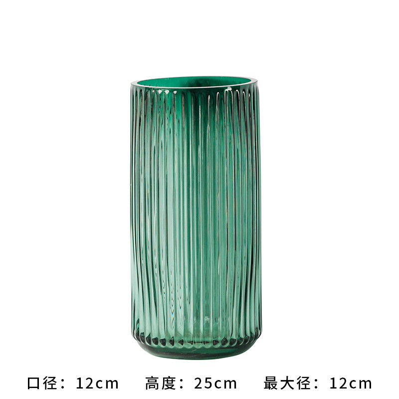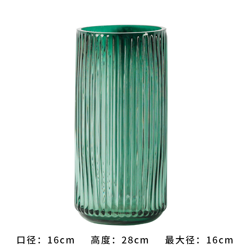 유럽식 꽃병 녹색 세로 줄무늬 원형 유리 꽃병 투명 꽃꽂이 유리병 거실 장식 화분