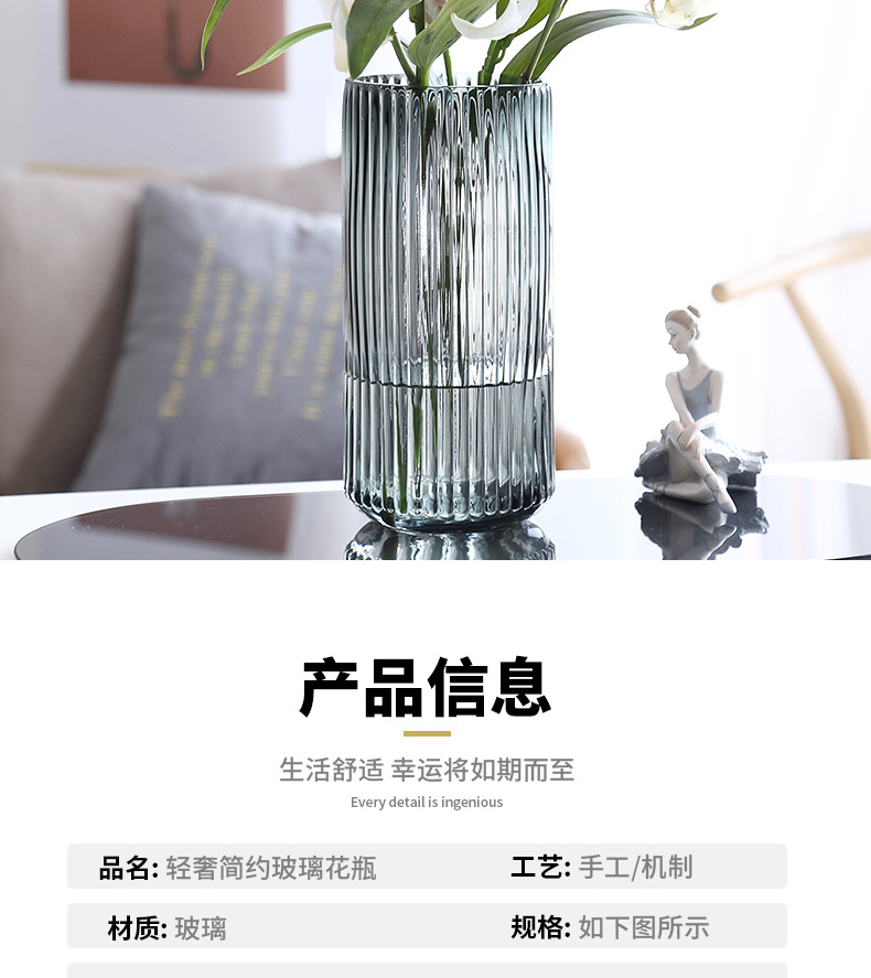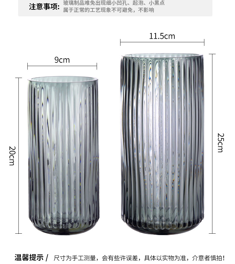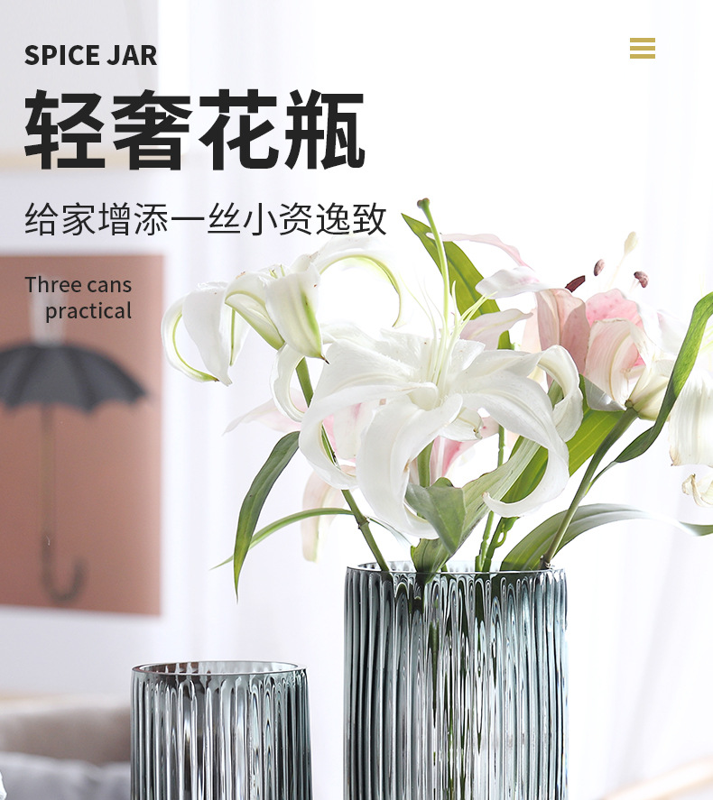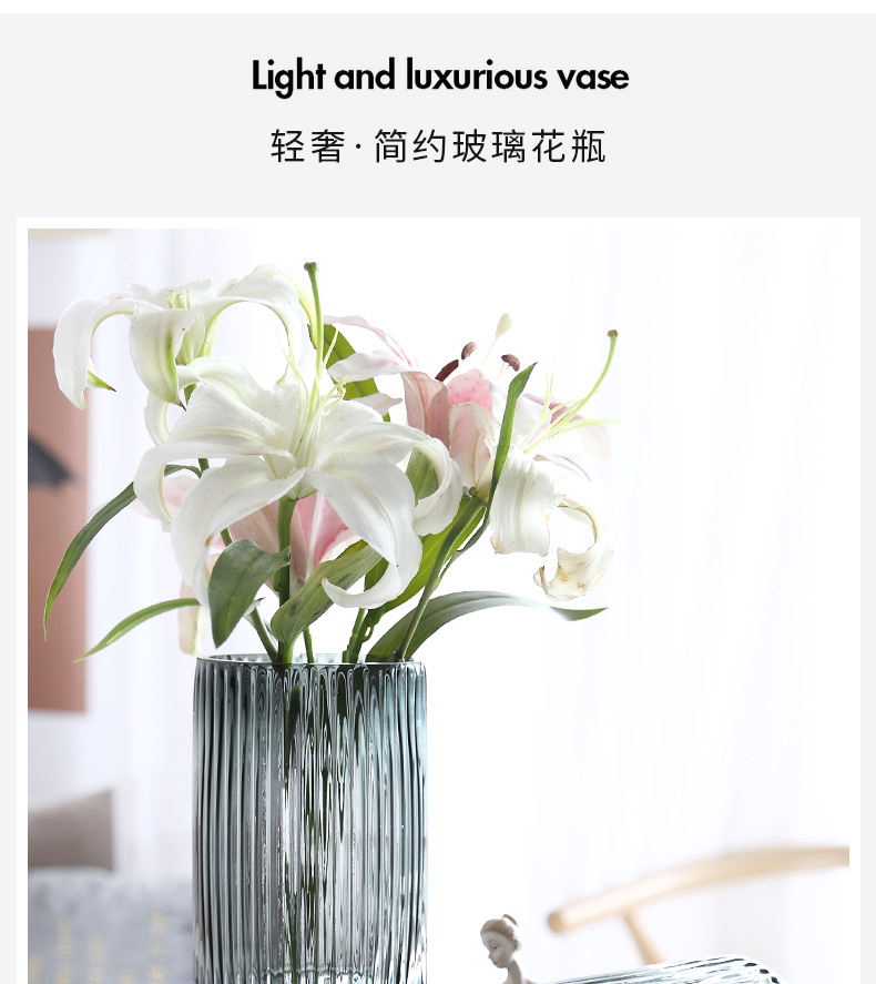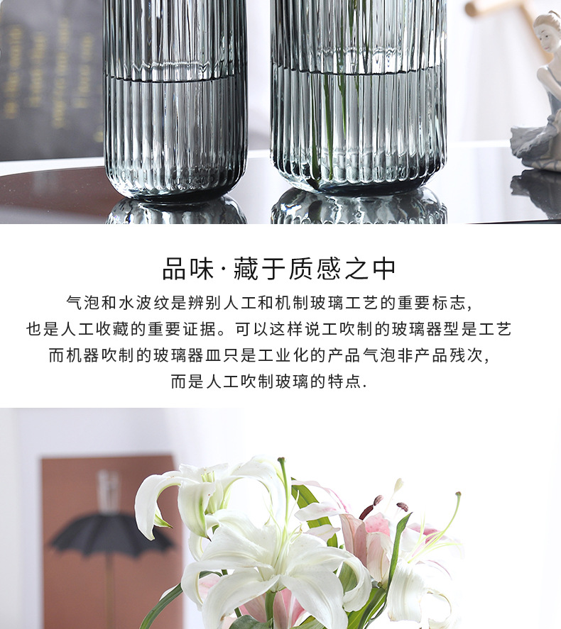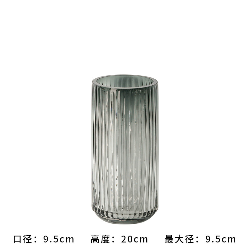 유럽식 꽃병 녹색 세로 줄무늬 원형 유리 꽃병 투명 꽃꽂이 유리병 거실 장식 화분
