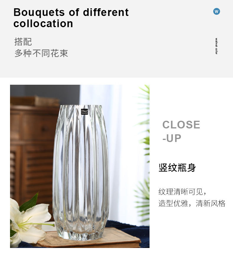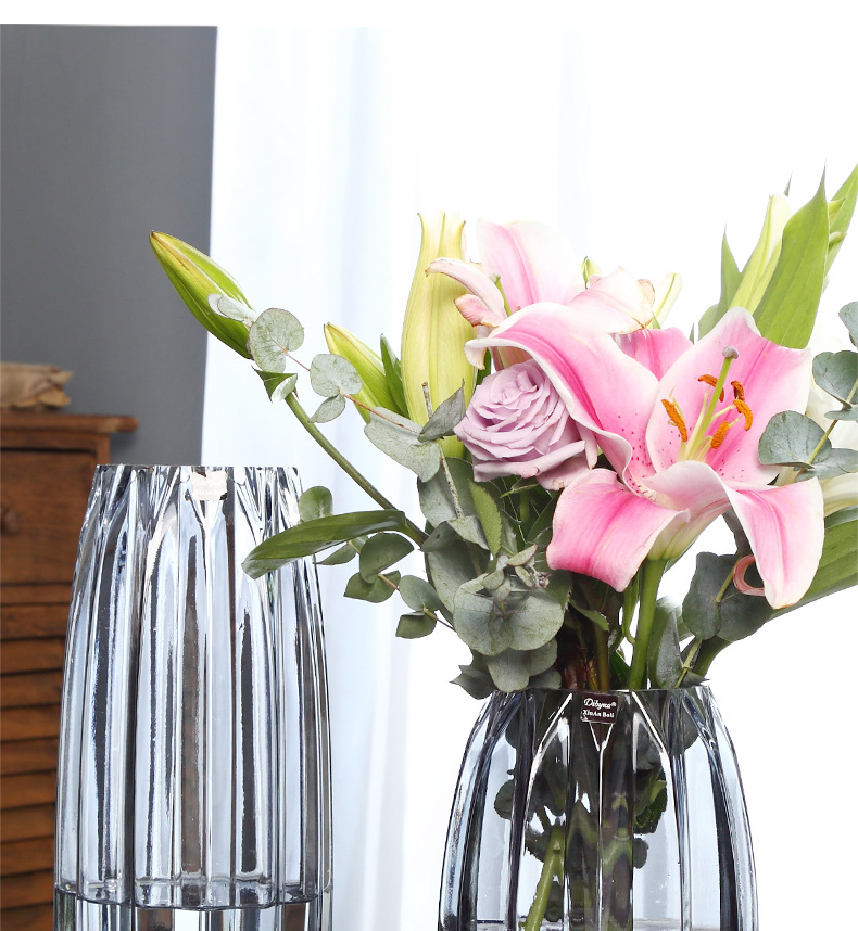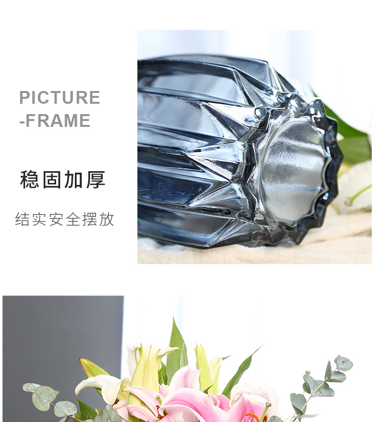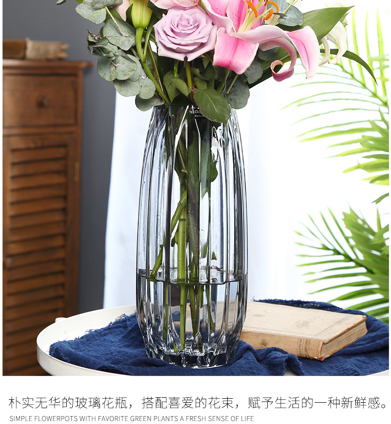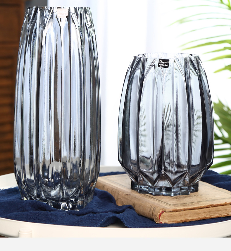 북유럽풍 심플 스모크 그레이 투명 유리 꽃병 수경 재배용 부겐빌레아 드라이플라워 꽃꽂이 화분 장식품 녹색 식물 인스 스타일