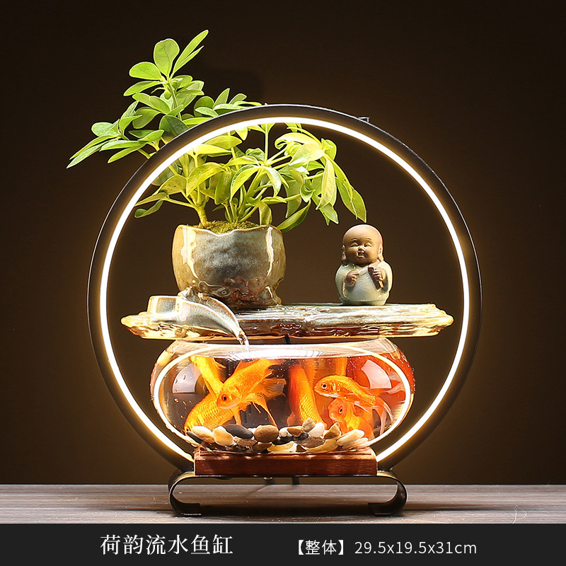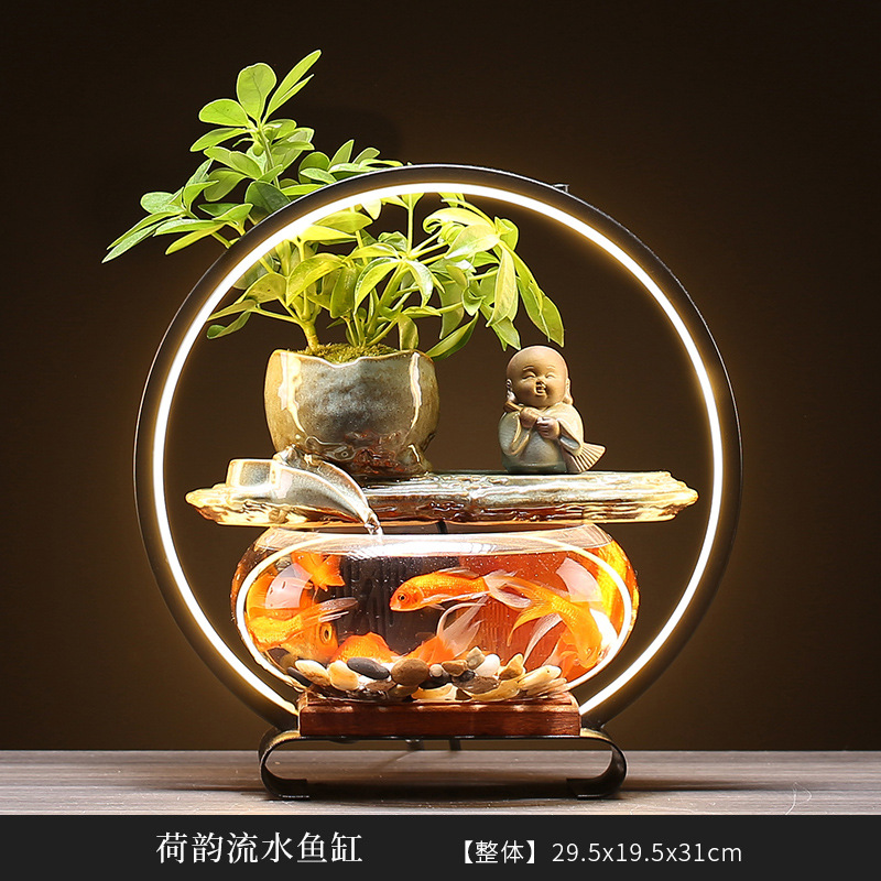 행운의 물 장식품 유리 어항 홈 거실 데스크탑 사무실 분수 오프닝 선물 공장 콘센트스토어 가기