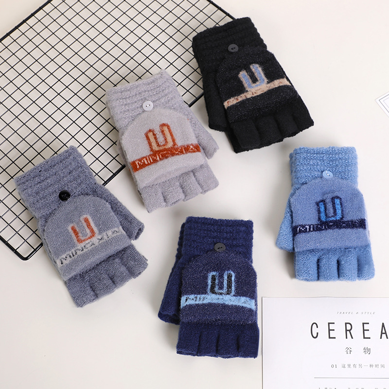 루이야 엄선 남성용 겨울 모조 캐시미어 보온 두꺼운 반장갑 반덮개 학생용 필기 운전용