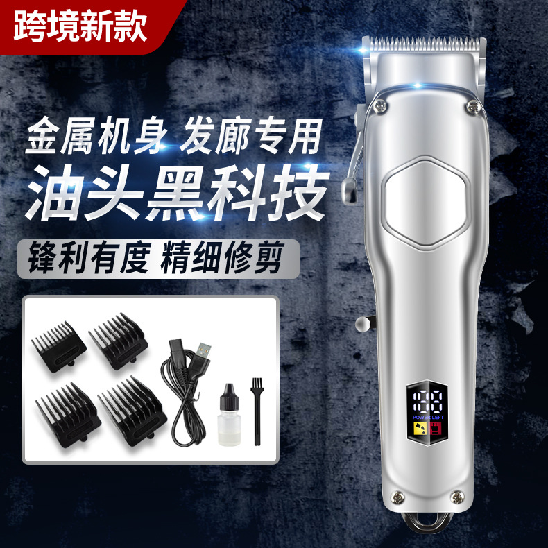 亚马逊新款家用理发器男士电动复古电推剪静音电推子LED电量显示