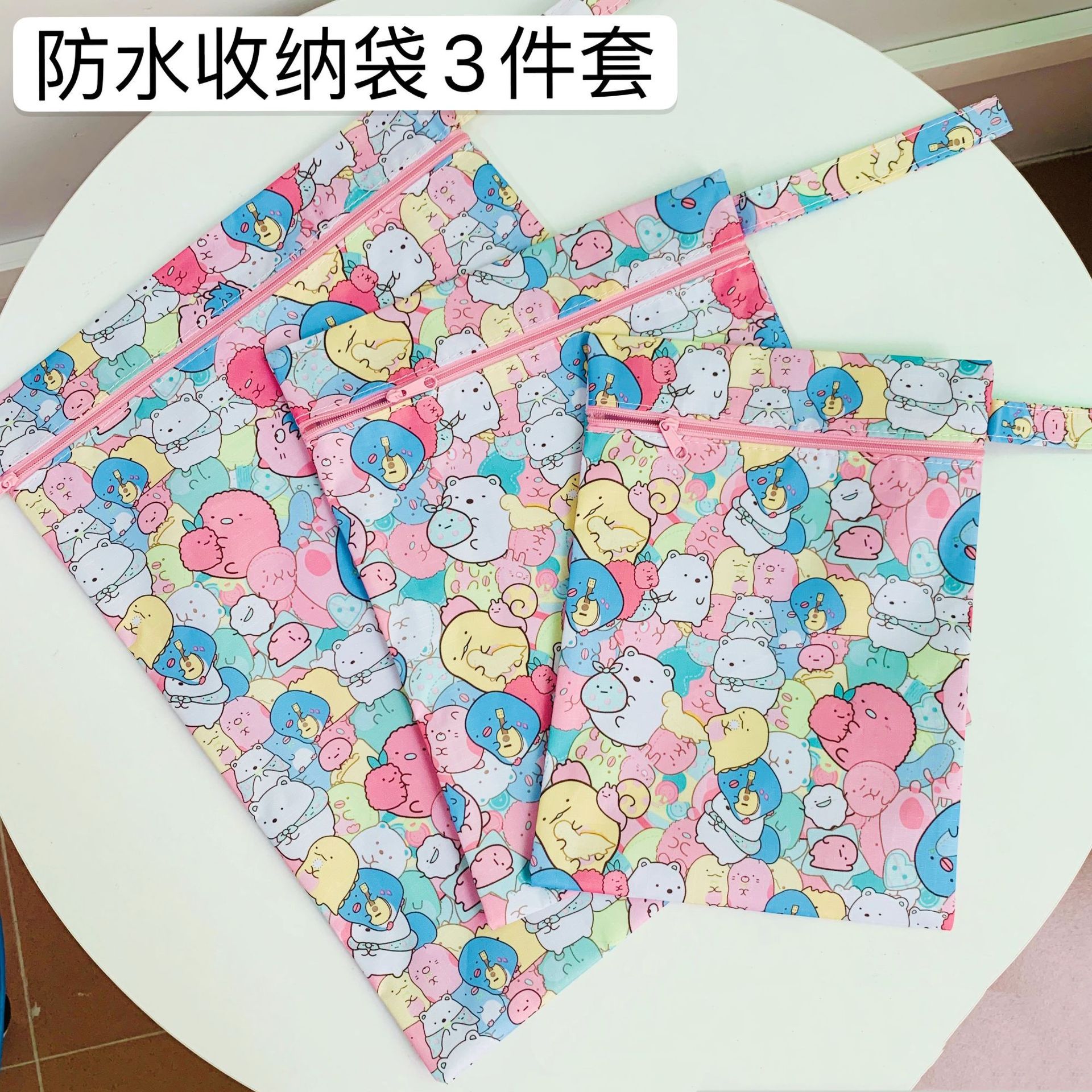袋子面料厚实,可水洗反复使用,平时外出旅行用来收纳贴身衣物,鞋子都可以,宝宝外出放奶瓶尿不湿,袋子有手柄,手提挂婴儿车上都方便,也可以用于宝宝上幼儿园收纳更换衣物,一套三个,可以随意分配收纳!