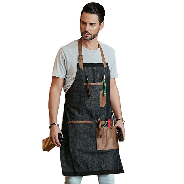 아마존 데님 앞치마 남성 이발사 스튜디오 우유 차 커피 숍 꽃 창조적 인 앞치마 사용자 정의 로고