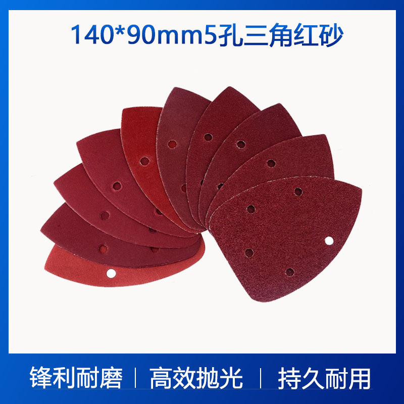 140*90mm 벨벳 삼각 사포 5홀 플로킹 레드 사포 자가 접착 사포 목공 연마 건식 사포
