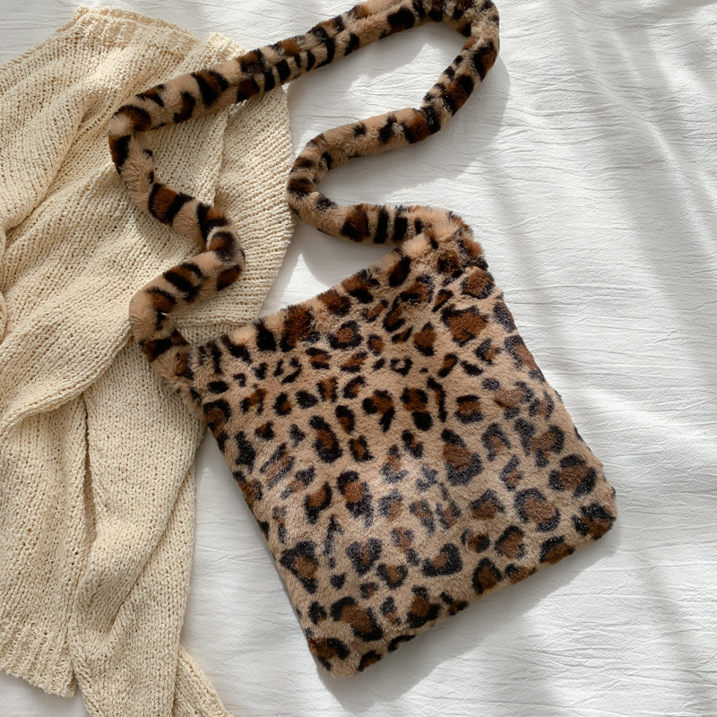 2024 가을 겨울 신상 한국 스타일 개성 있는 레오파드 프린트 숄더백 캐주얼 대용량 퍼 크로스백스토어 가기