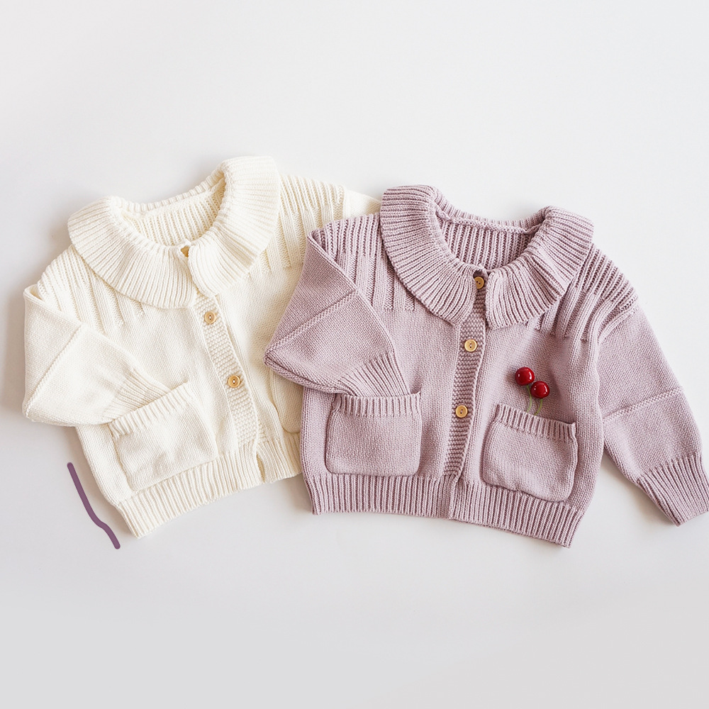한국식 소녀 스웨터 도매 봄과 가을 새 소녀 옷깃 스웨터 니트 카디건 면화 스웨터 서양식 코트스토어 가기