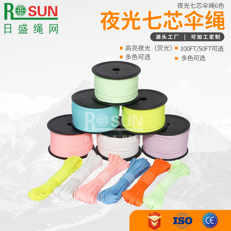 Risheng 야외 발광 7 코어 우산 로프 하이라이트 형광 발광 캠핑 로프 발광 텐트 로프 우산 로프