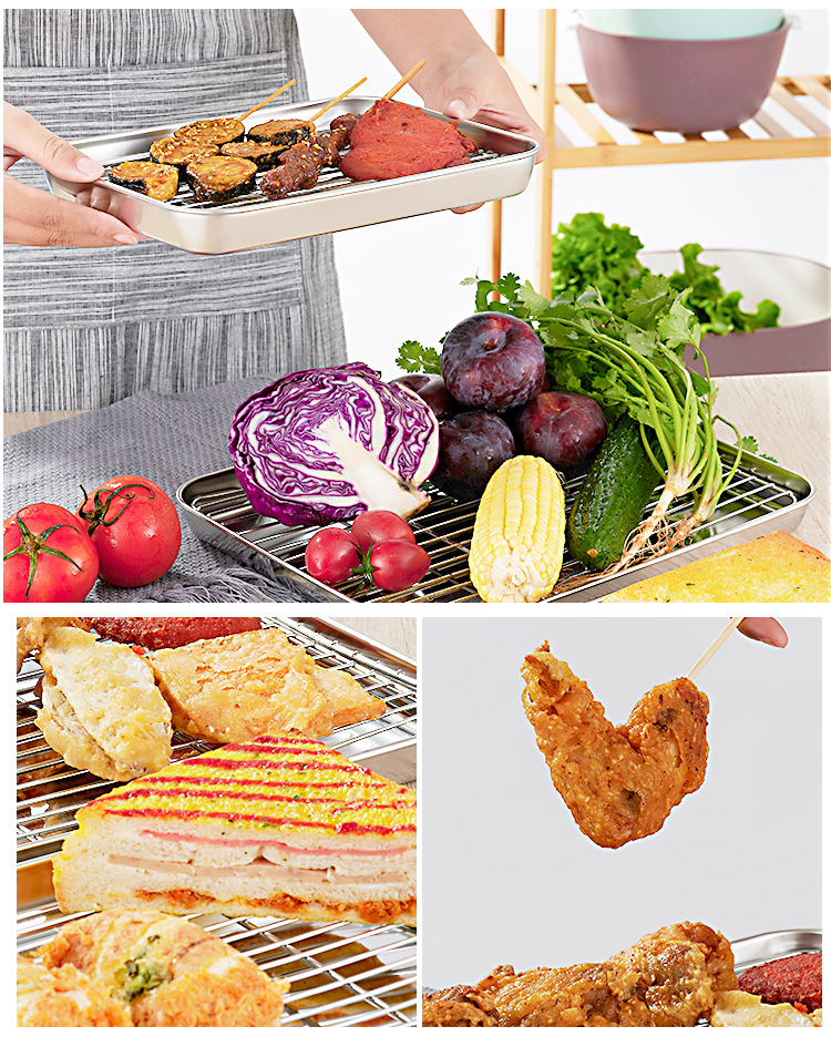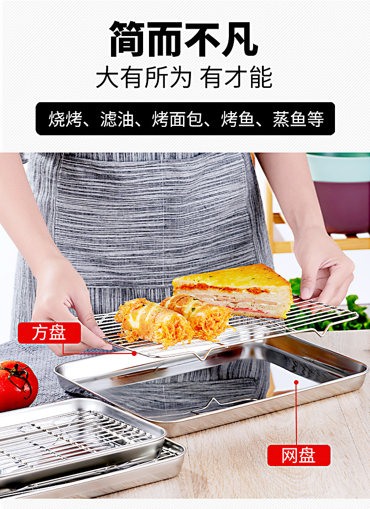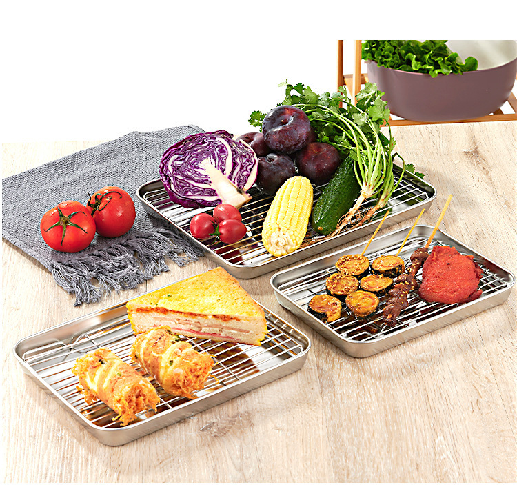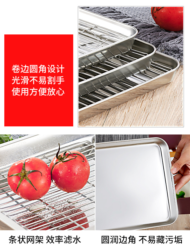 304 스테인레스 스틸 오일 팬 플랫 바닥 팬 라이스 롤 팬 그리드 스테인레스 스틸 베이킹 팬