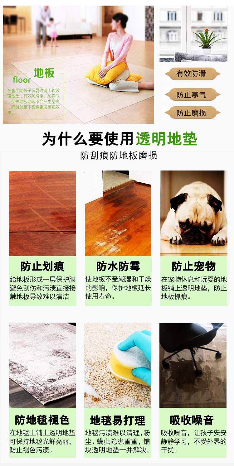 국경 간 아마존 투명 바닥 매트 PVC 카펫 호텔 우드 바닥 보호 필름 방수 발 매트 의자 매트 사용자 정의스토어 가기