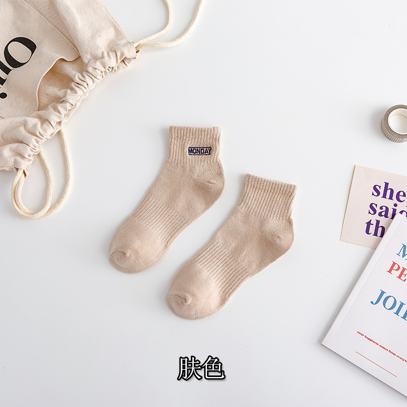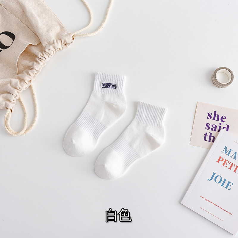 秋冬新款袜子男中筒字母星期袜 百搭束腰精梳棉男士潮袜现货男袜