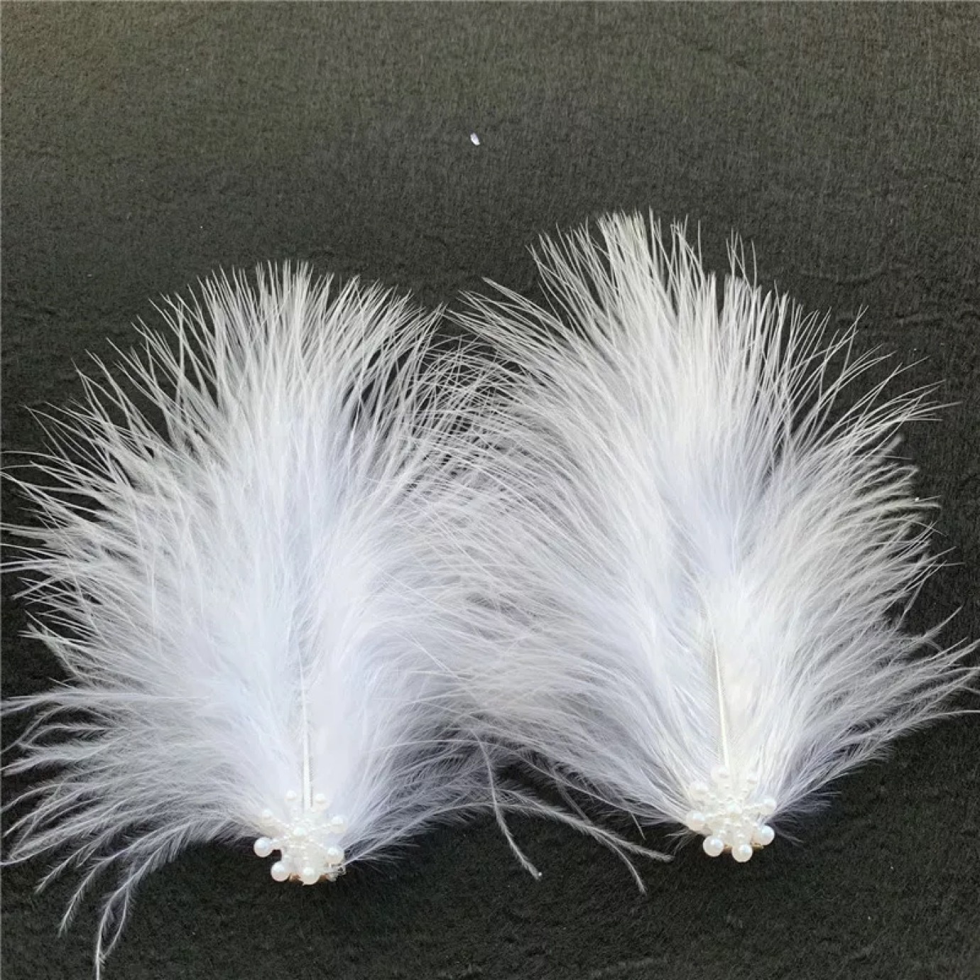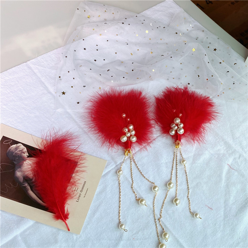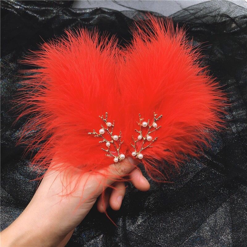 • 빨간색과 흰색 깃털 머리핀 한 쌍