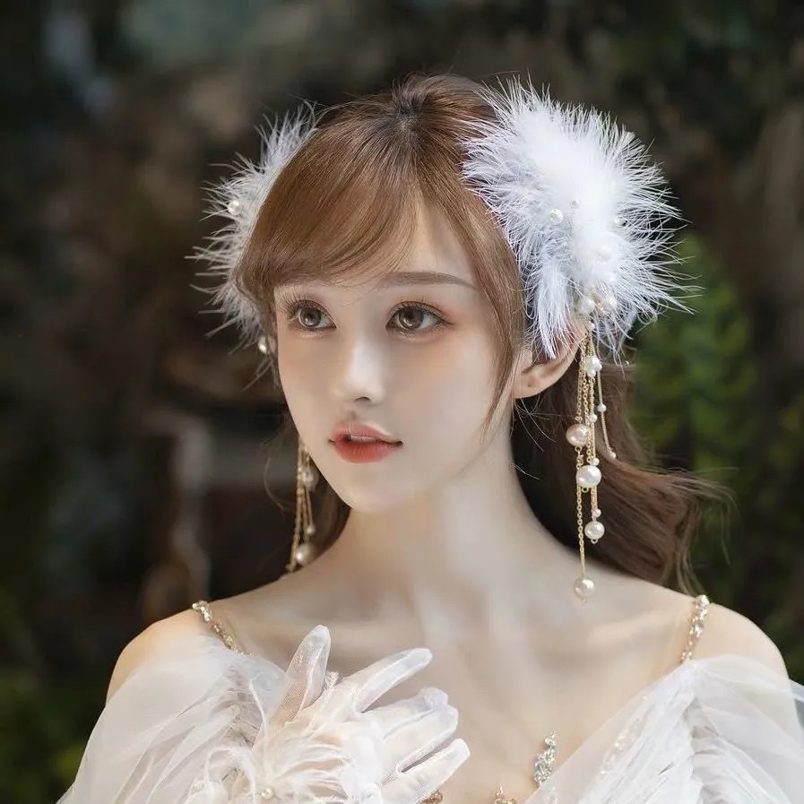 깃털 모자 머리핀 센 스타일 요정 슈퍼 요정 헤어 클립 사이드 클립 소녀 일본식 귀여운 골동품 한 스타일 헤어 액세서리스토어 가기