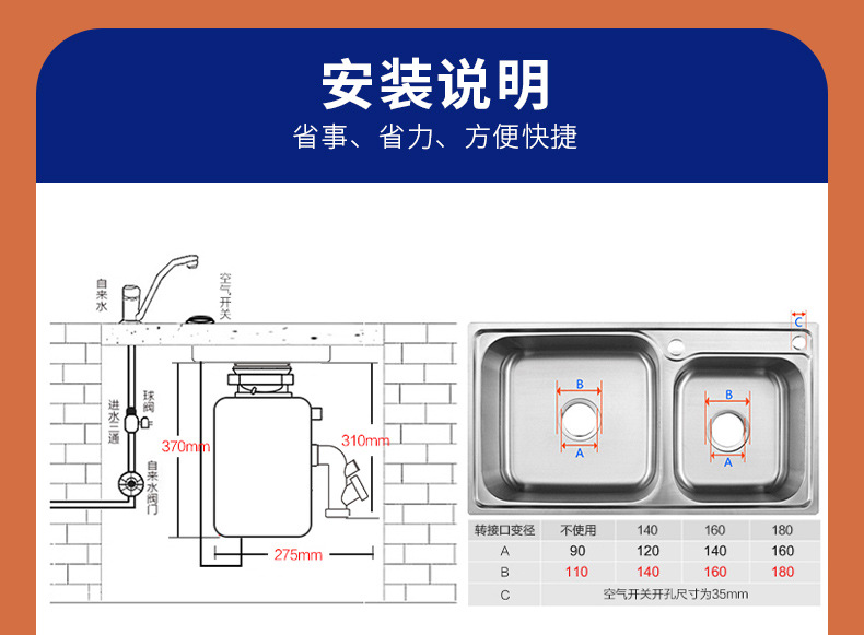 Dengshang 음식물 쓰레기 처리기 가정용 주방 하수구 싱크대 자동 주방 처리 분쇄기 음소거