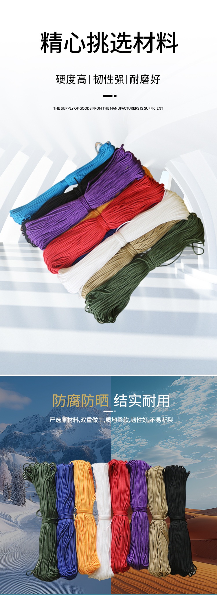 나일론 컬러 브레이드 로프 제조업체 야외 내마모성 빨랫줄 DIY 수제 브레이드 내마모성 텐트 방풍 로프