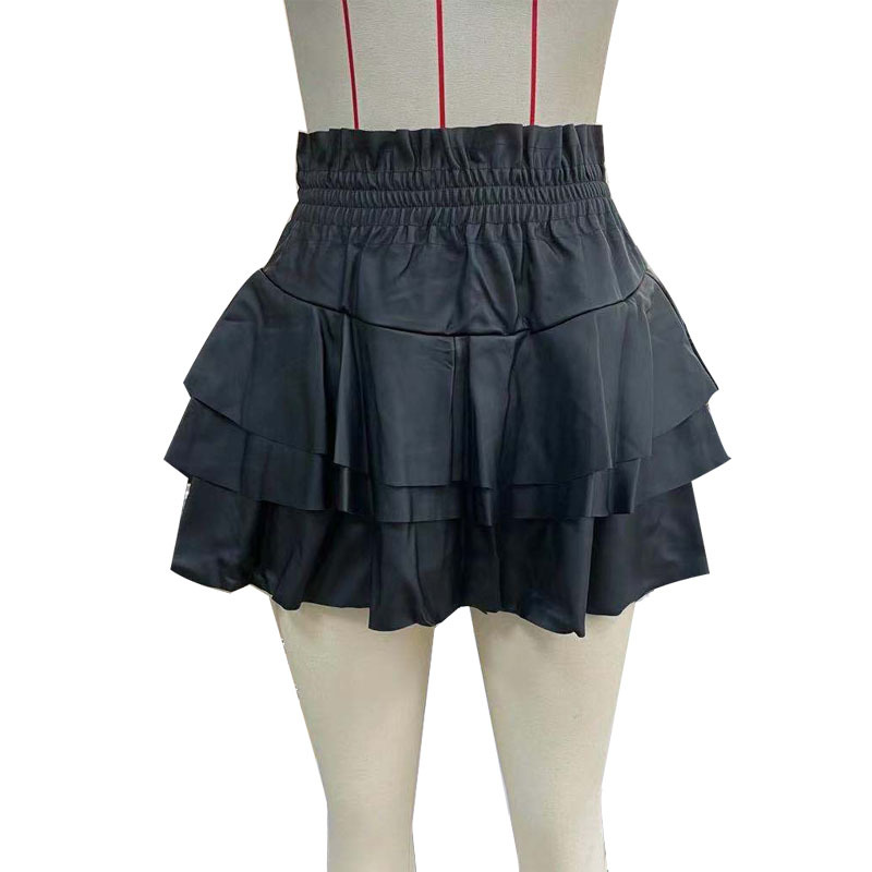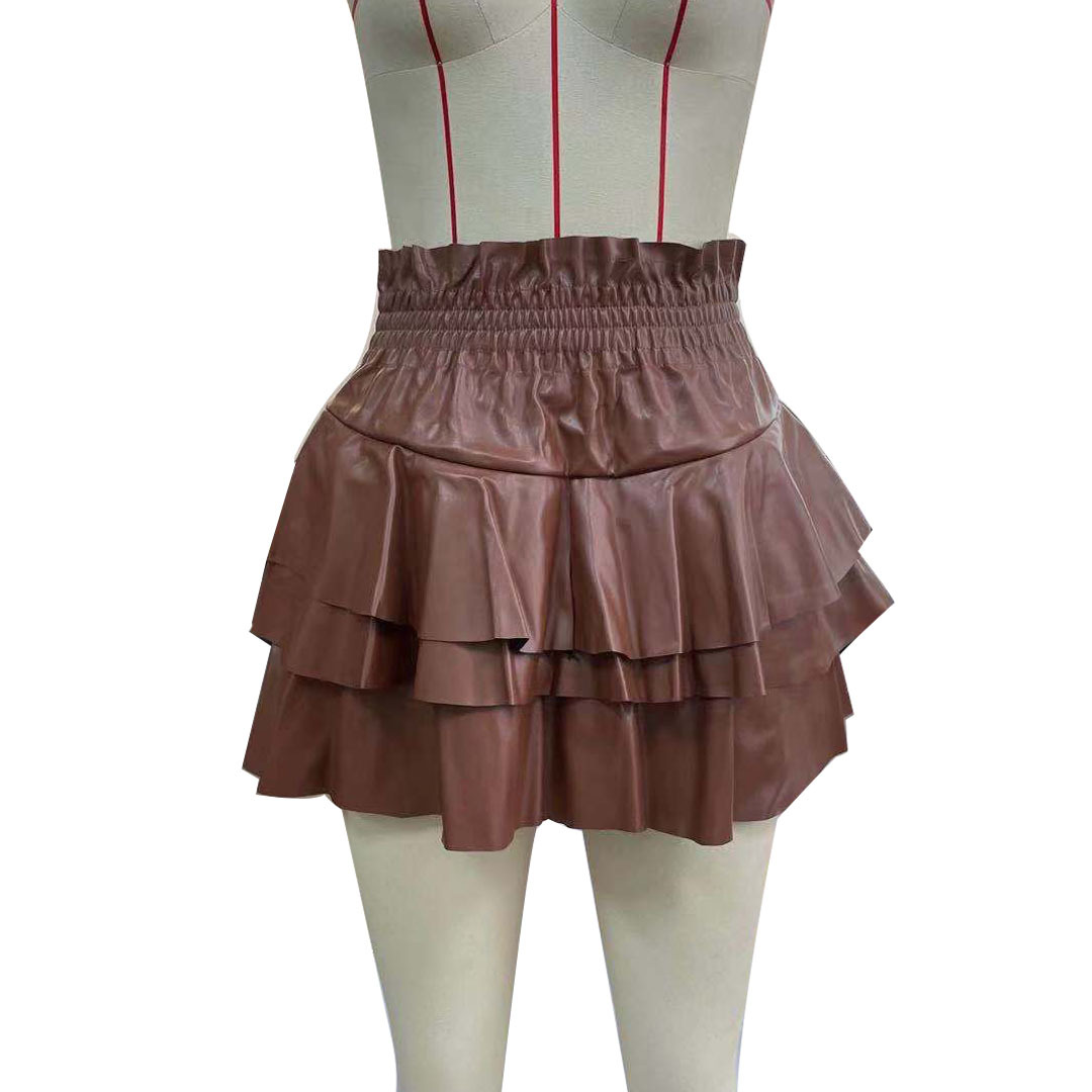 우아한 여성용 스커트 가죽 스커트 유럽 및 미국 스타일 허리 조임 미니스커트 풍성한 스커트 가을 겨울 신상 2275