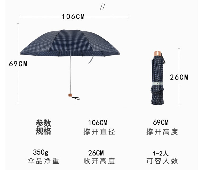 파라다이스 우산 더블 10 개 10 개 뼈 그리드 클래식 체크 무늬 우산 태양 우산 접이식 우산 비즈니스 우산 햇볕이 잘 드는 우산 정품스토어 가기