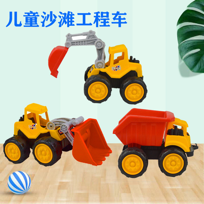 批发仿真工程车儿童惯性工程车挖掘机玩具男女孩玩沙子沙滩车模型