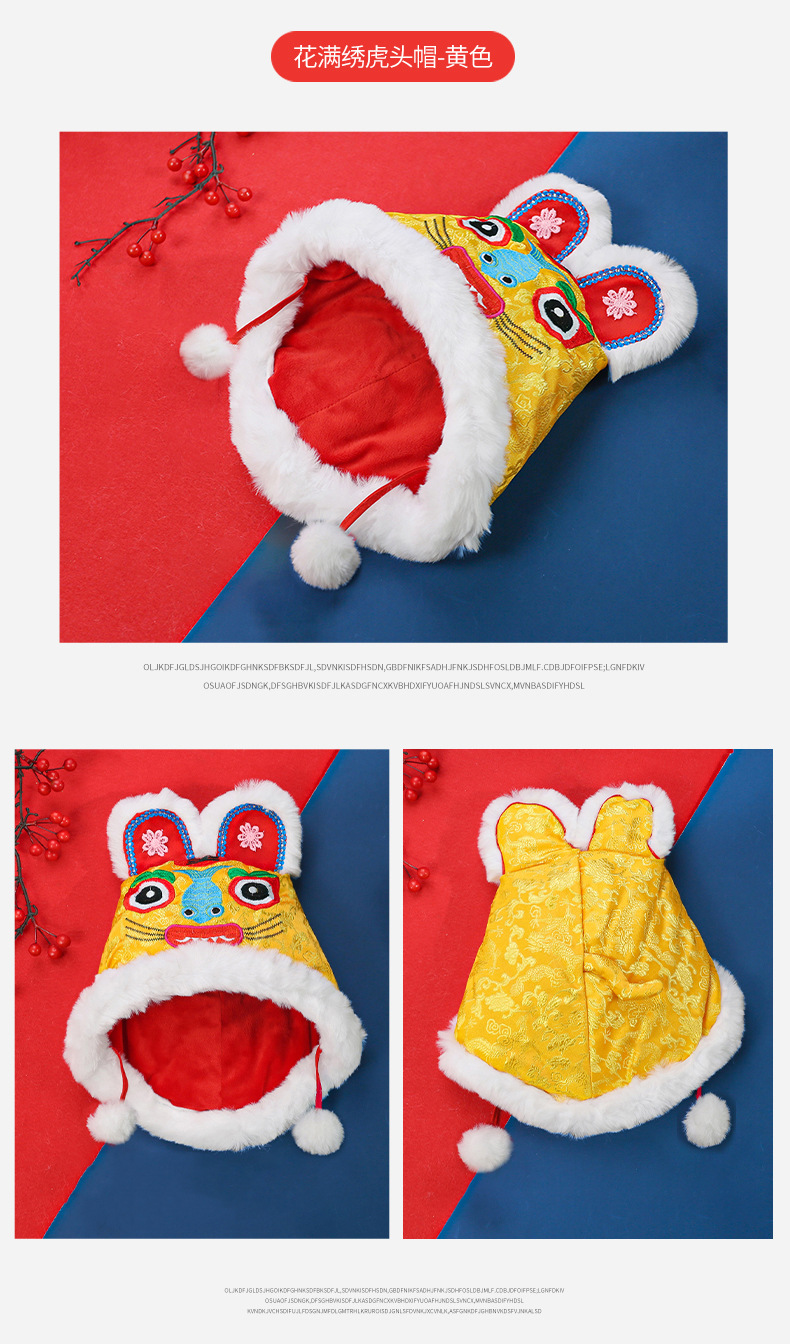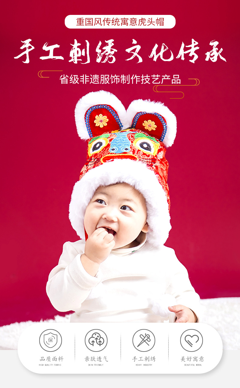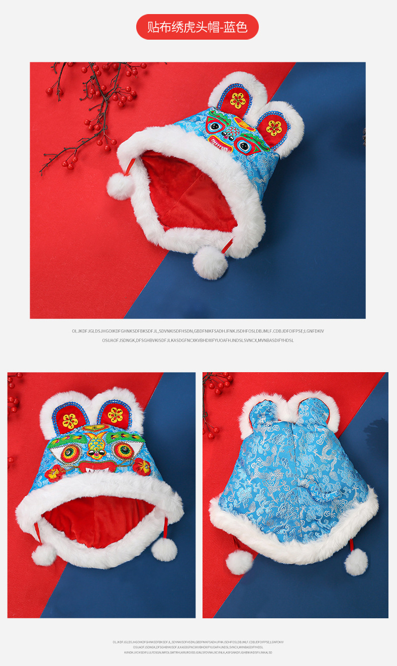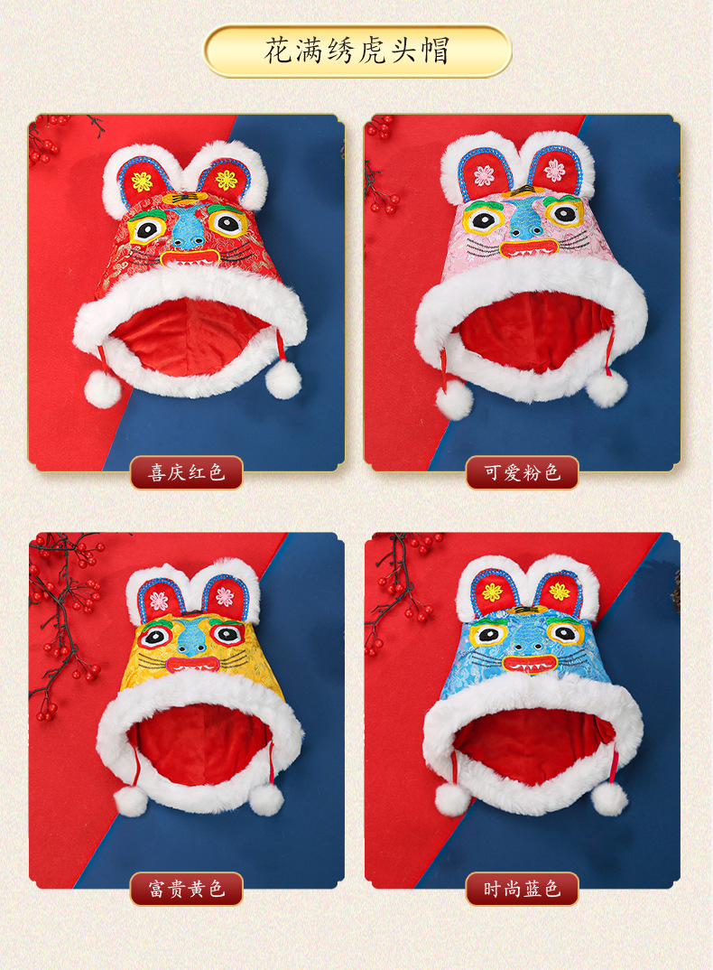 신상 아기 호랑이 모자 어린이 신년 면모자 전통 중국풍 자수 모자 백일 기념 호랑이 모자