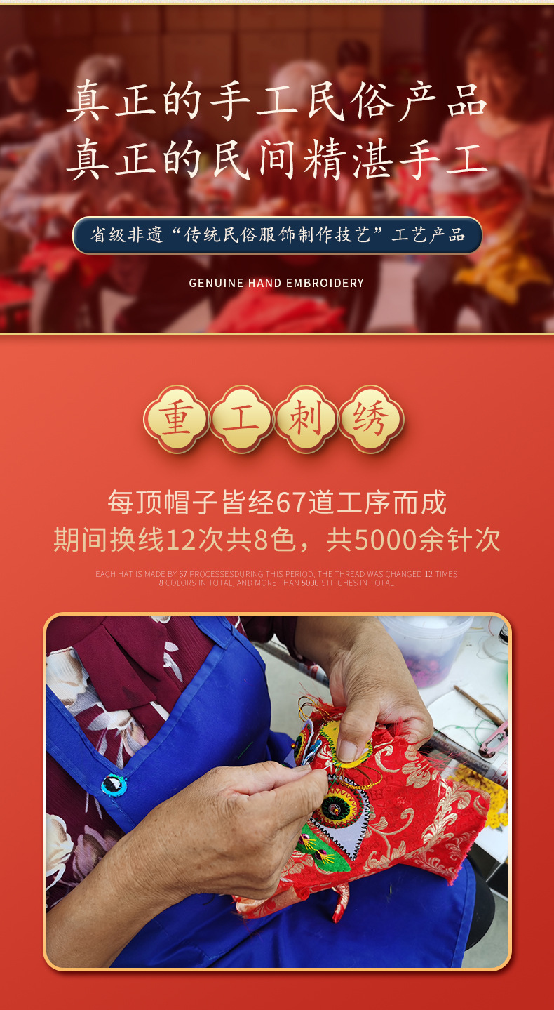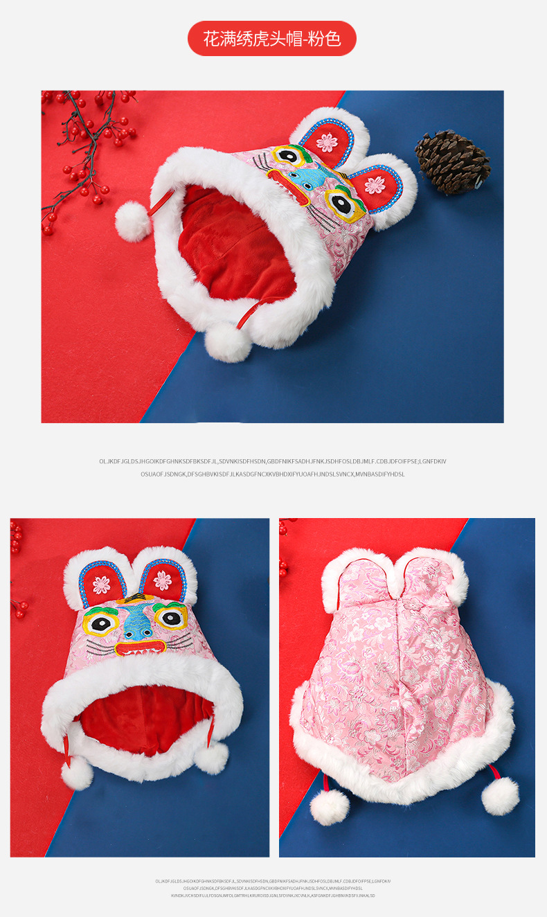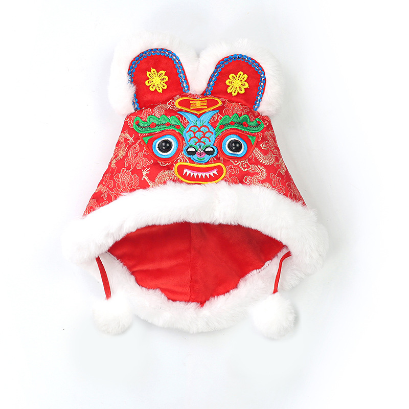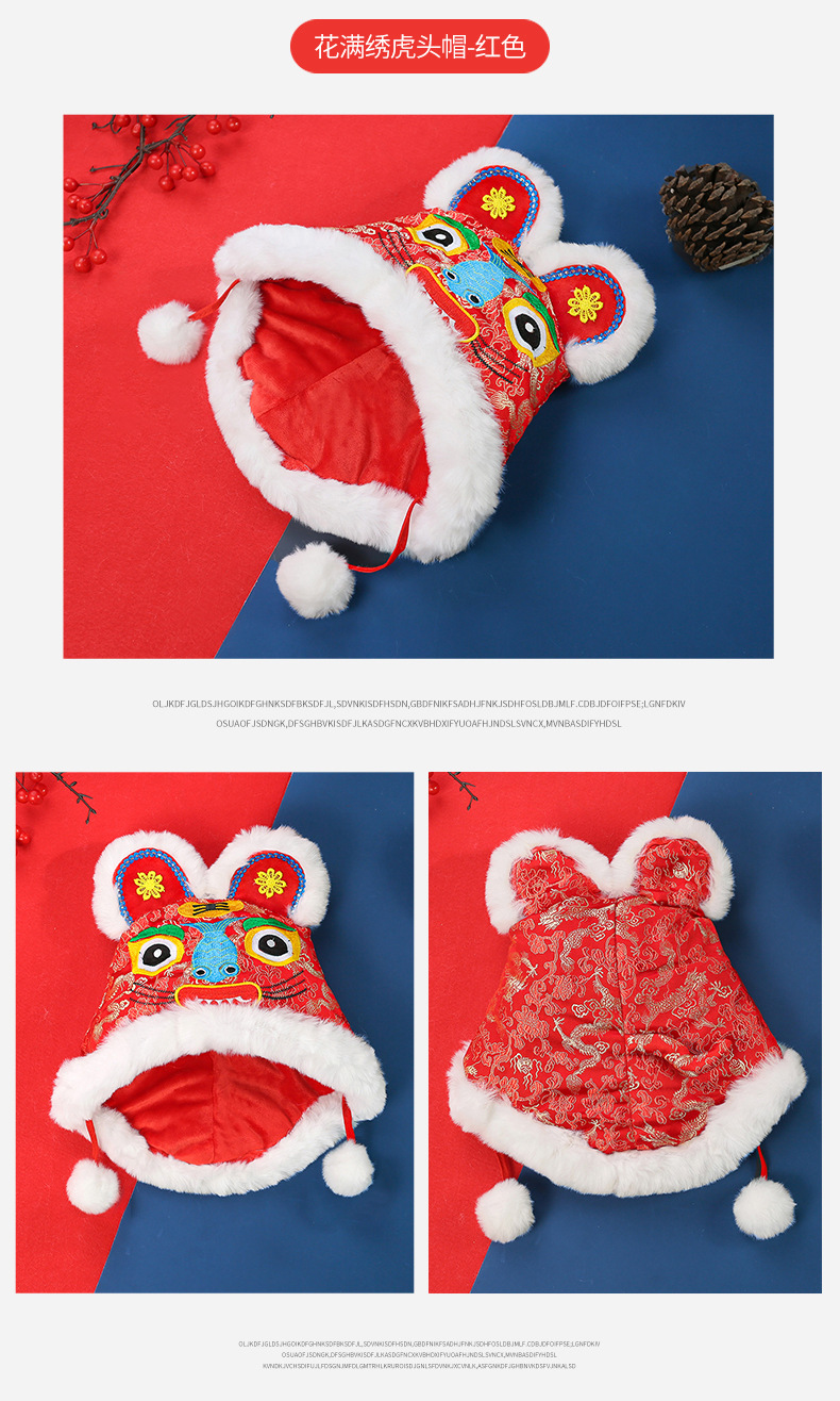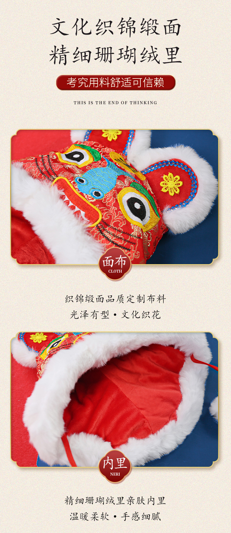 신상 아기 호랑이 모자 어린이 신년 면모자 전통 중국풍 자수 모자 백일 기념 호랑이 모자