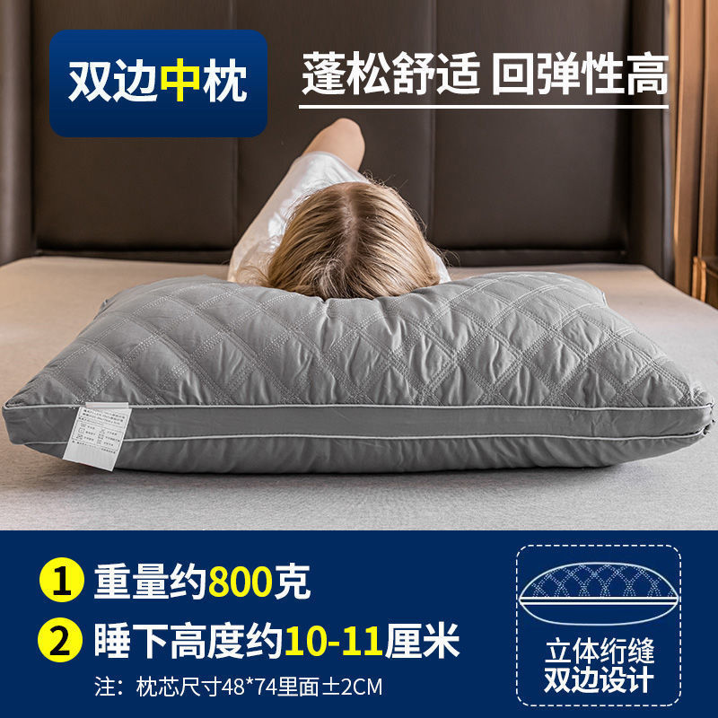 • 양측 퀼팅 베개 [그레이] [미들 베개] 800g