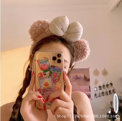 귀여운 곰 귀 머리띠 여자의 봉제 더피 곰 워시 얼굴 머리띠 머리 카드 그물 빨간 머리 밴드 재미있는 모자스토어 가기