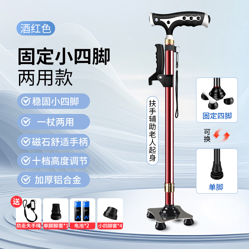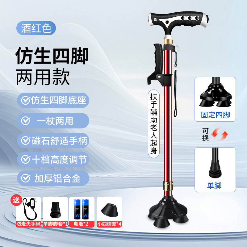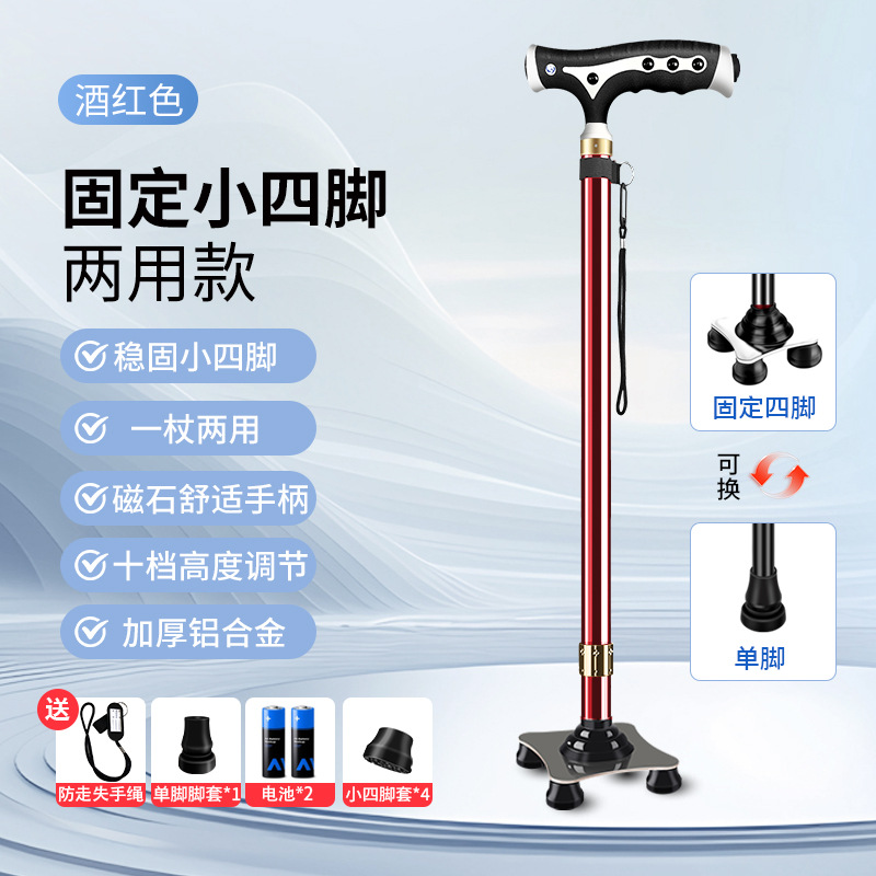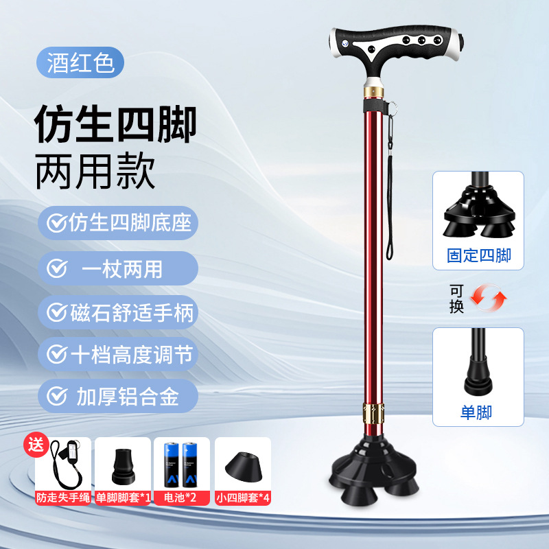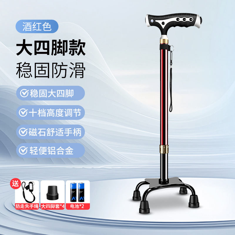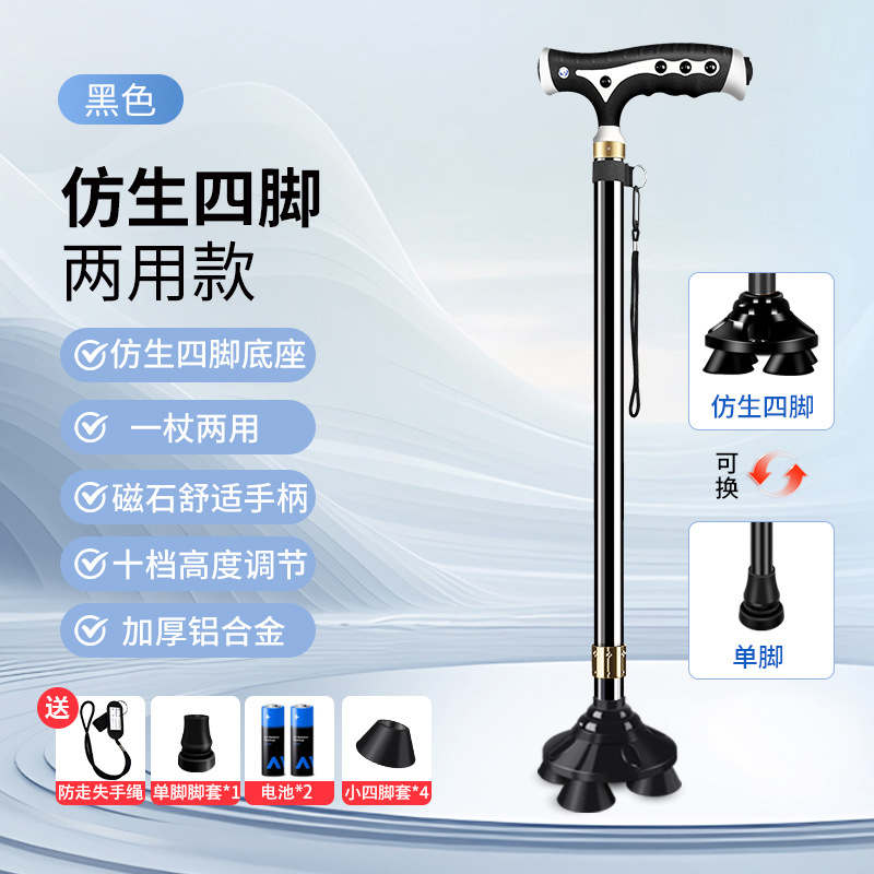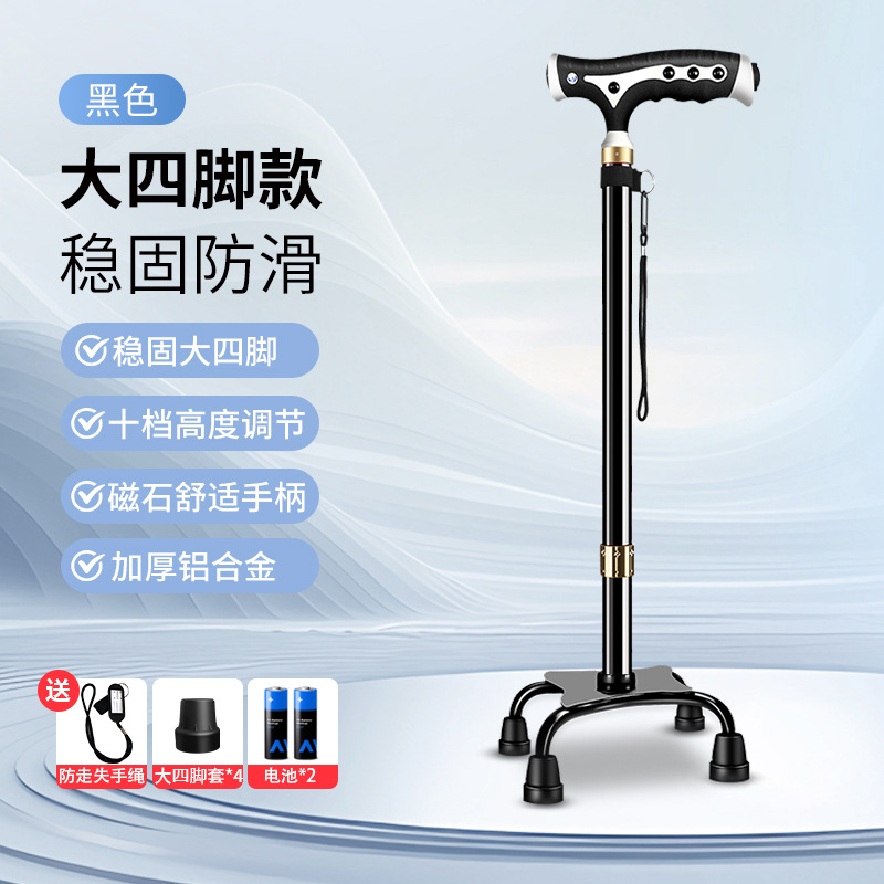 노인을 위한 조명이 있는 Chaoyi 알루미늄 합금 자기 치료 4개의 다리 지팡이, 조명이 있는 지팡이, 텔레스코픽 미끄럼 방지 지팡이