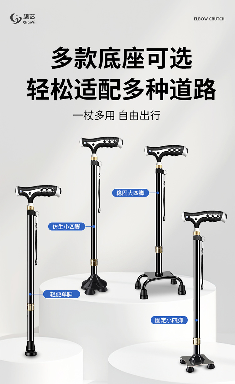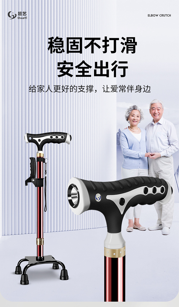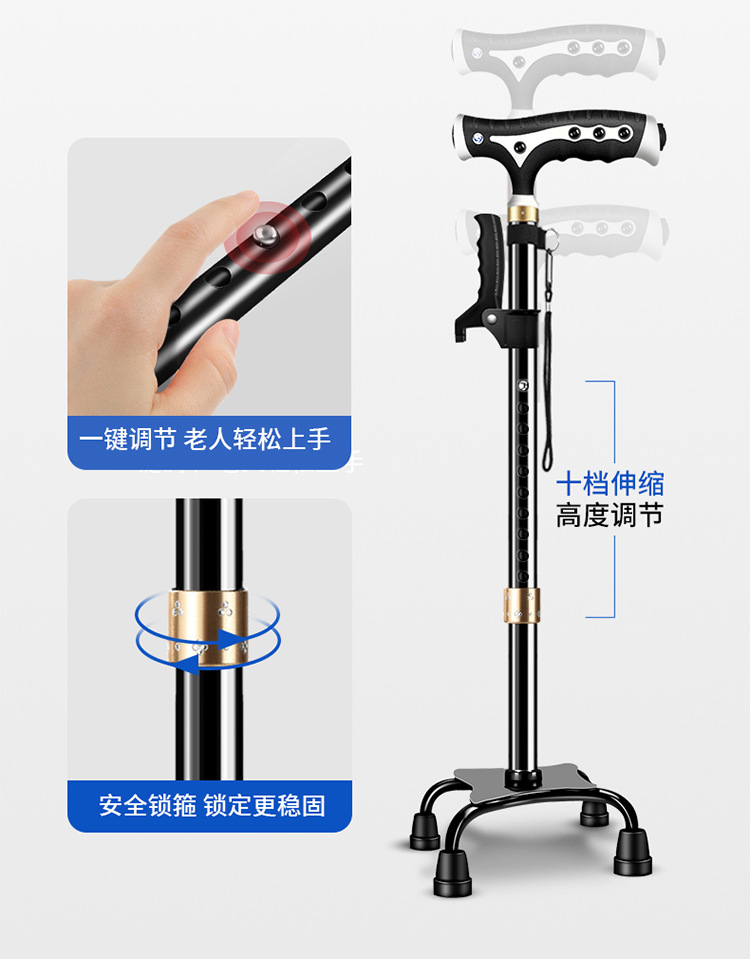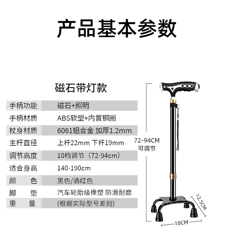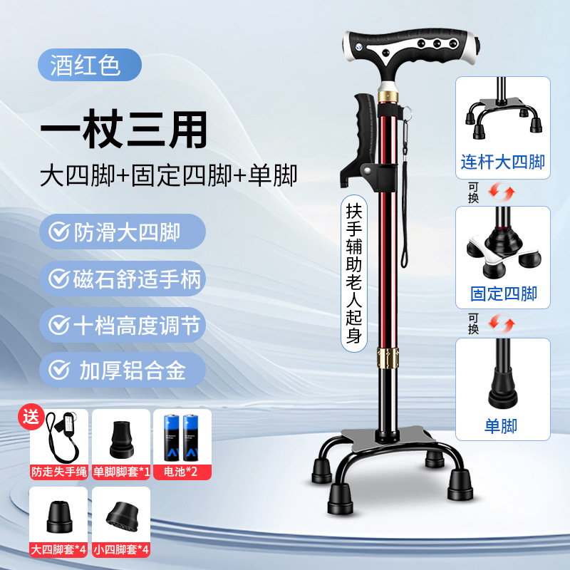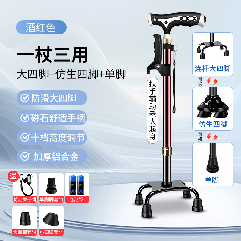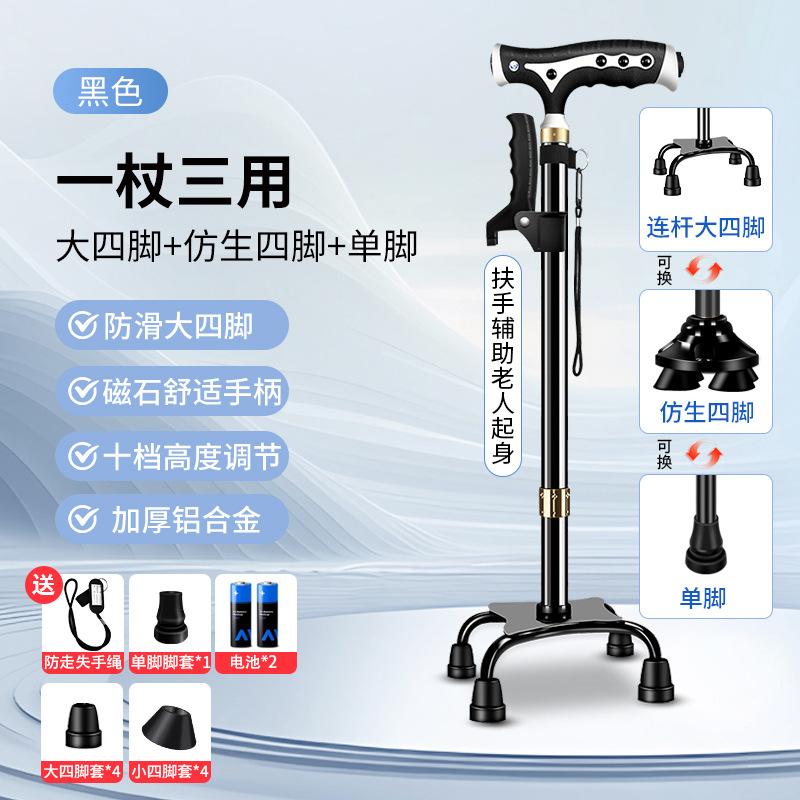 노인을 위한 조명이 있는 Chaoyi 알루미늄 합금 자기 치료 4개의 다리 지팡이, 조명이 있는 지팡이, 텔레스코픽 미끄럼 방지 지팡이