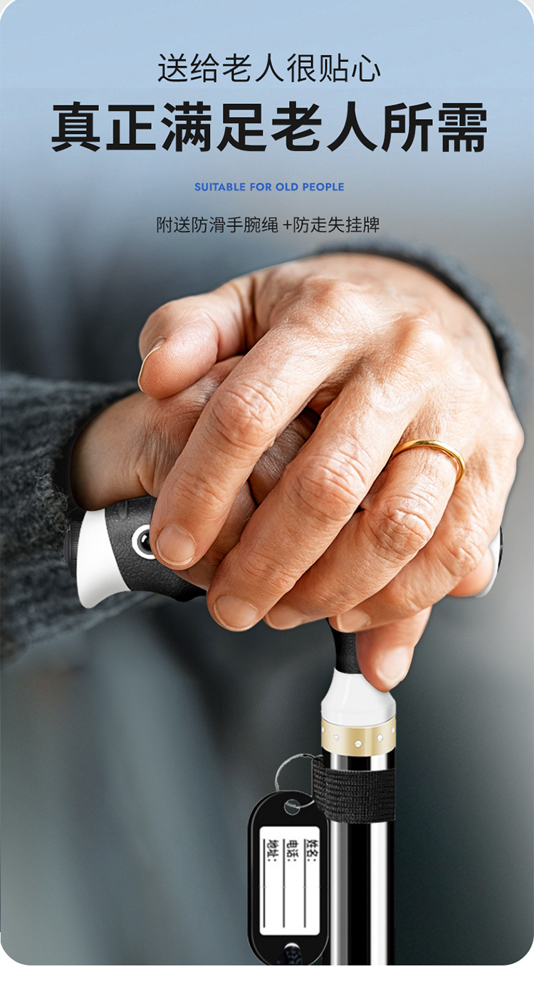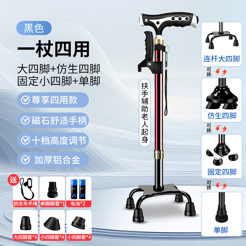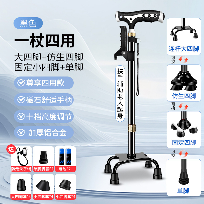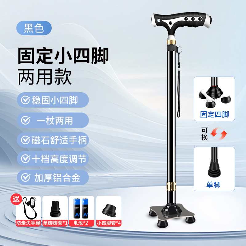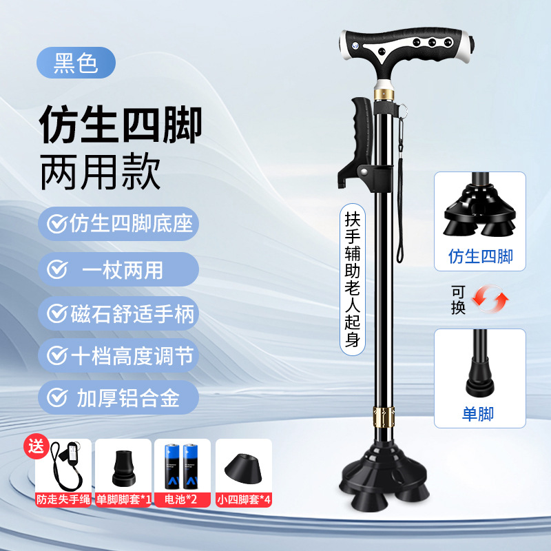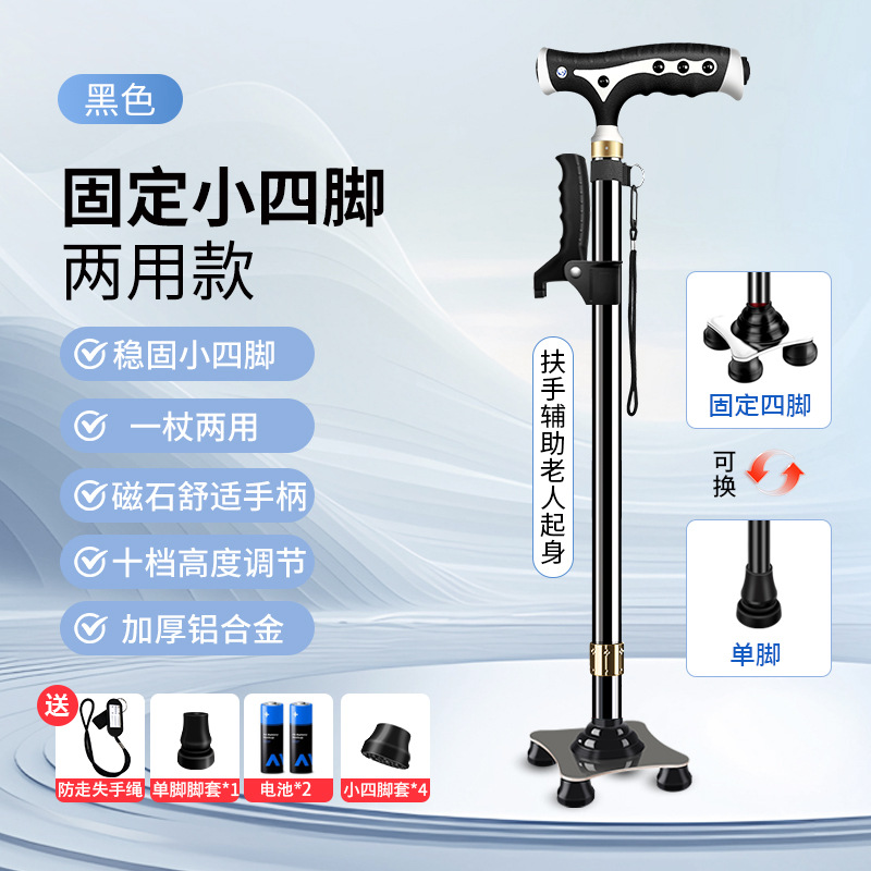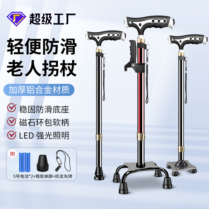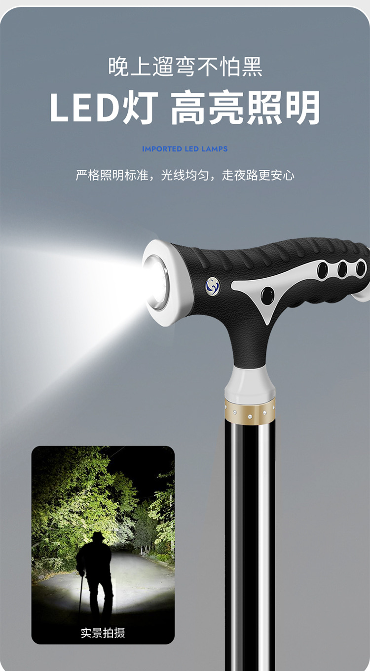 노인을 위한 조명이 있는 Chaoyi 알루미늄 합금 자기 치료 4개의 다리 지팡이, 조명이 있는 지팡이, 텔레스코픽 미끄럼 방지 지팡이스토어 가기