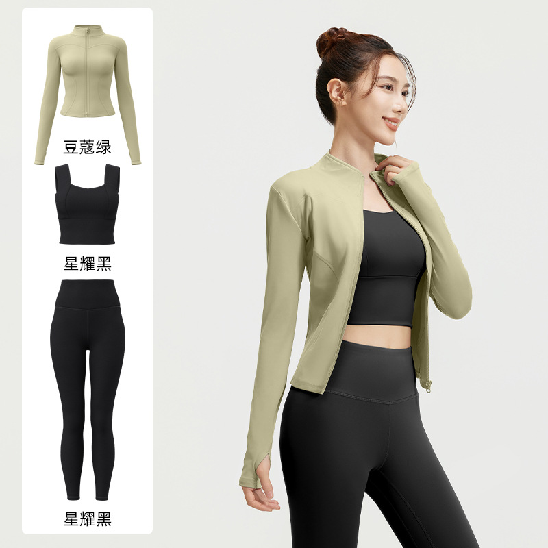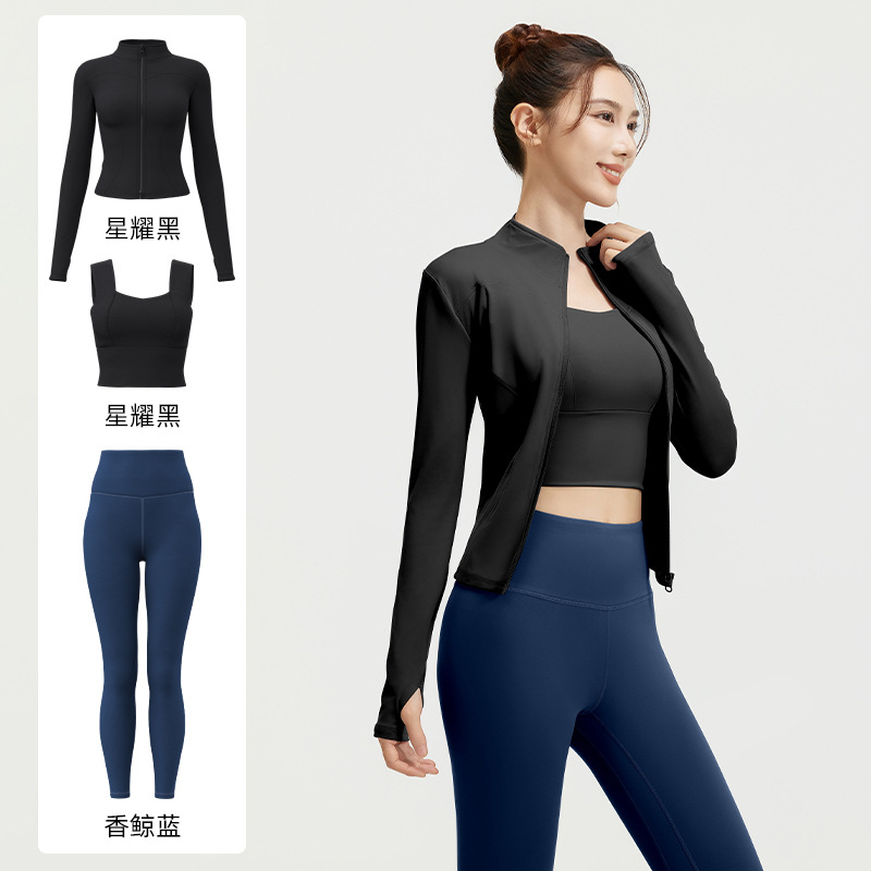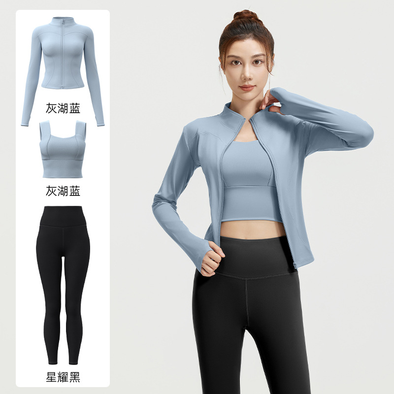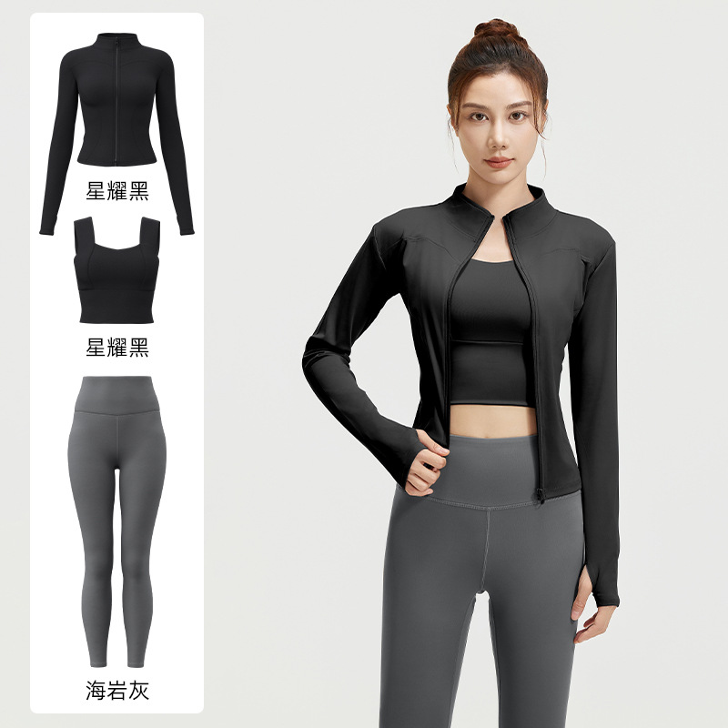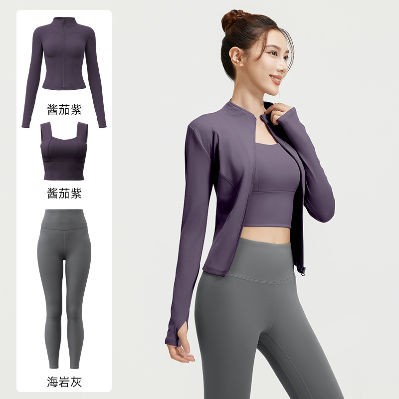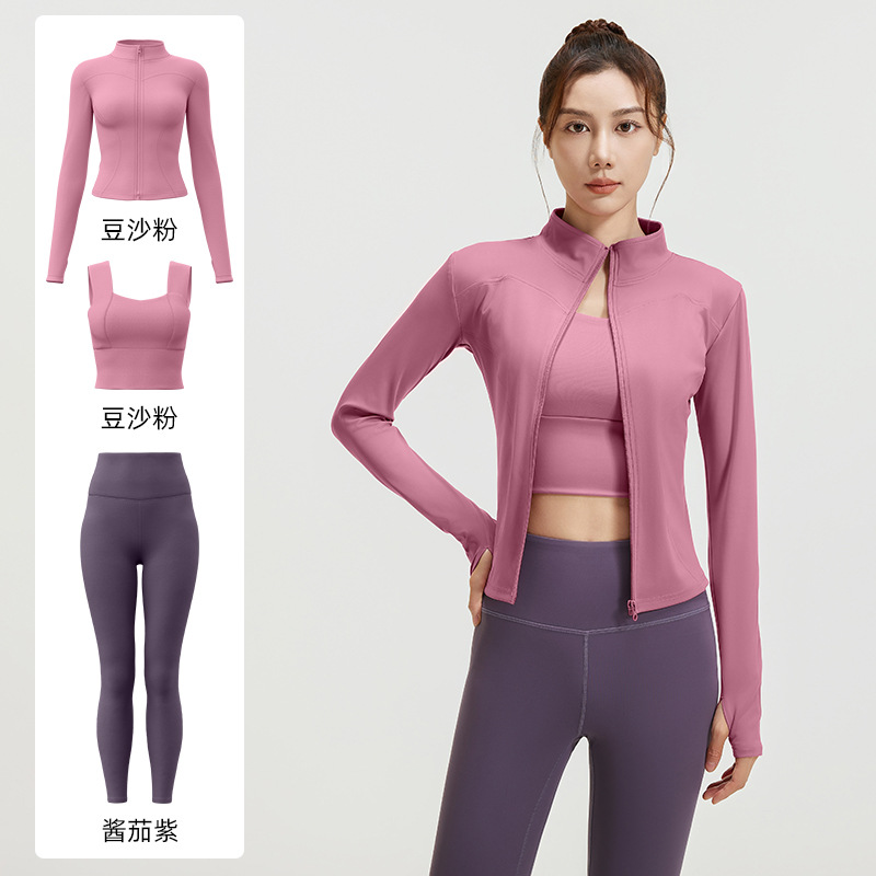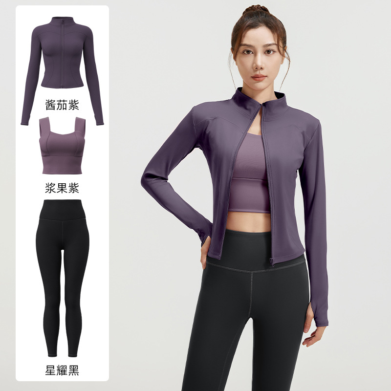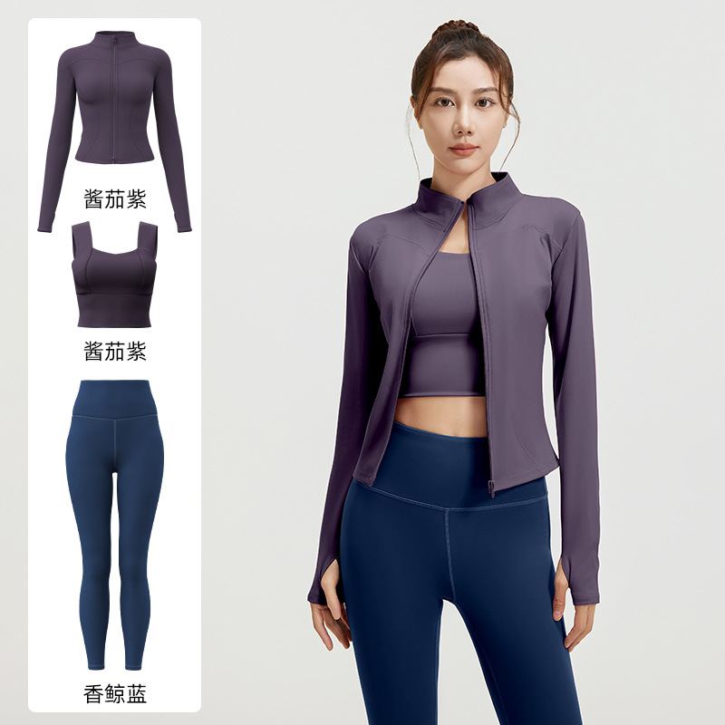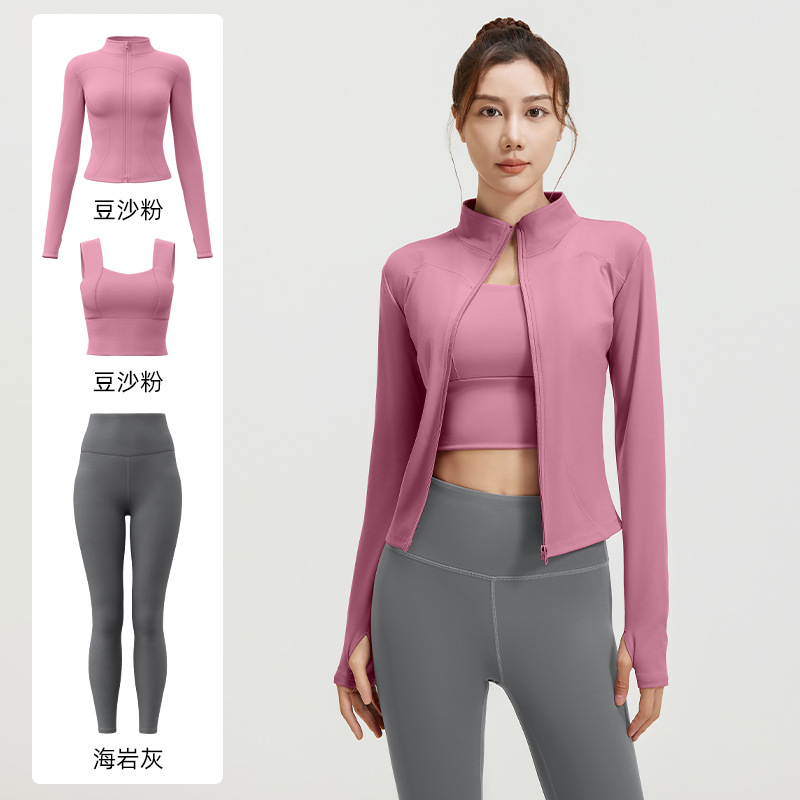Juyitang 봄과 가을 여성의 꽉 끼는 긴팔 탑 재킷 복숭아 엉덩이 피트니스 정장 유럽과 미국의 러닝 요가 슈트