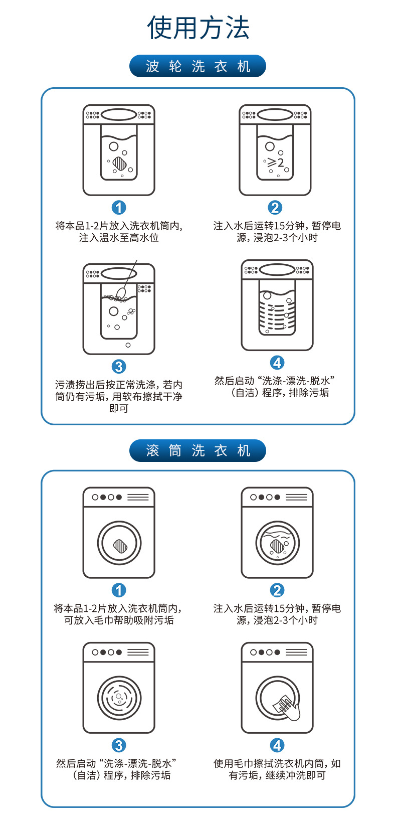 세탁기 발포성 세정 정제 발포성 정제 소독 석회질 제거 박테리아 드럼 세탁기 탱크 세척제 얼룩 인공물