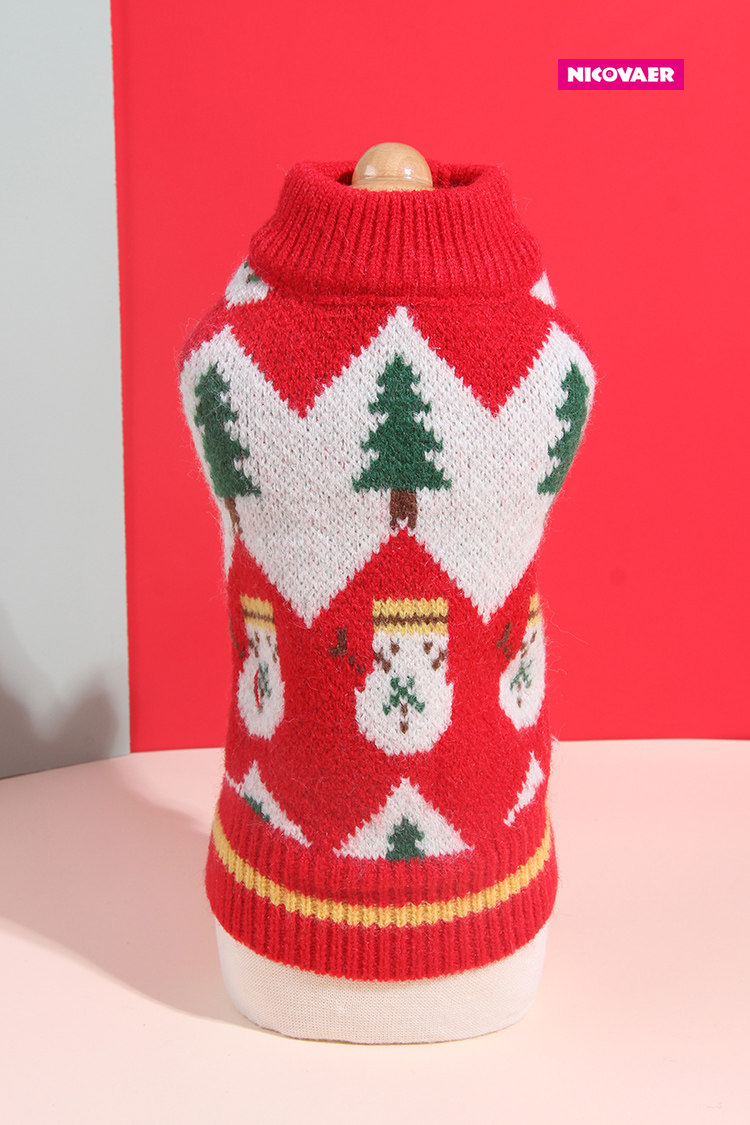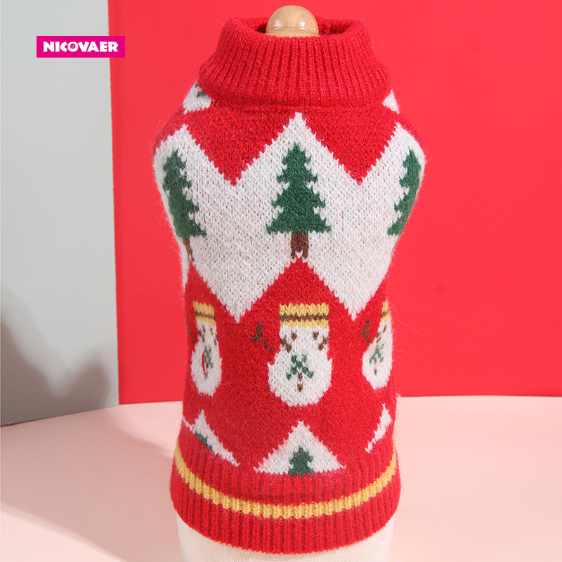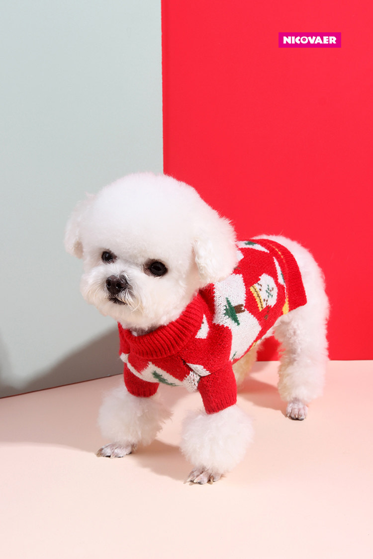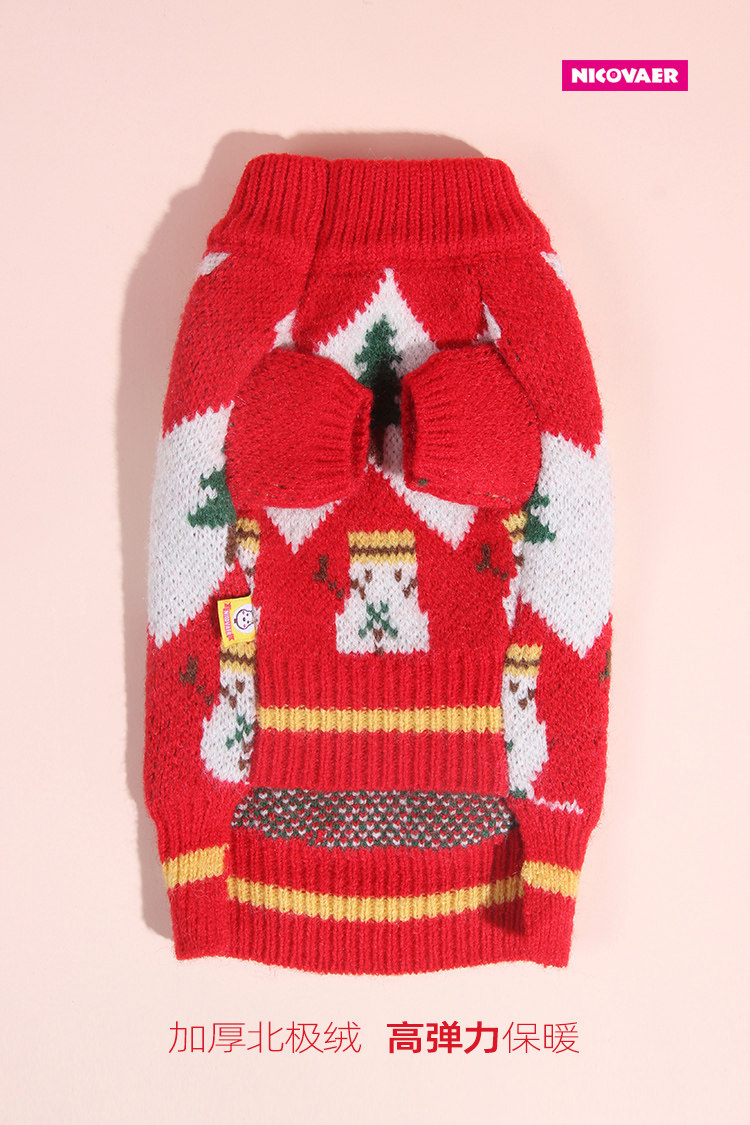 Nicwell Teddy 프랑스 양동이 고양이 개 옷 가을과 겨울 2 피트 북극 벨벳 스트레칭 크리스마스 새해 착용 두꺼운 스웨터