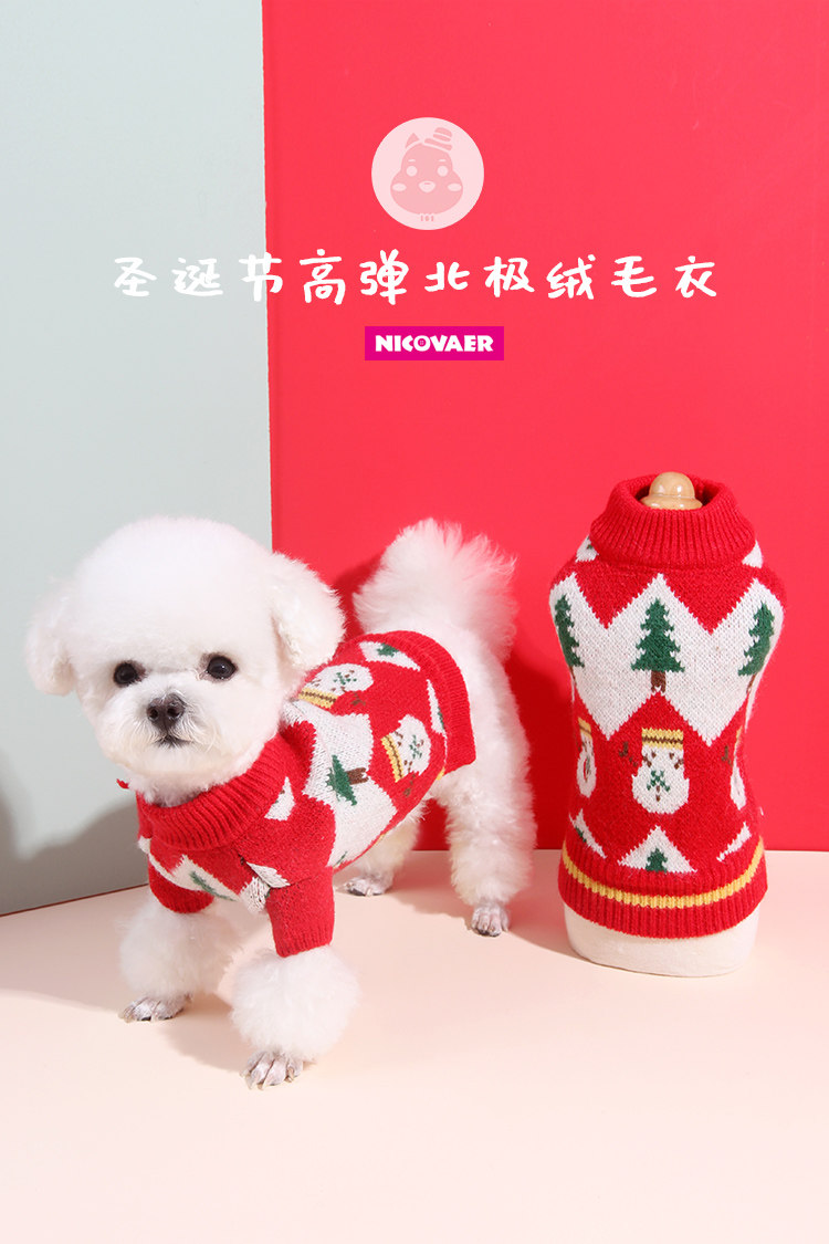 Nicwell Teddy 프랑스 양동이 고양이 개 옷 가을과 겨울 2 피트 북극 벨벳 스트레칭 크리스마스 새해 착용 두꺼운 스웨터스토어 가기