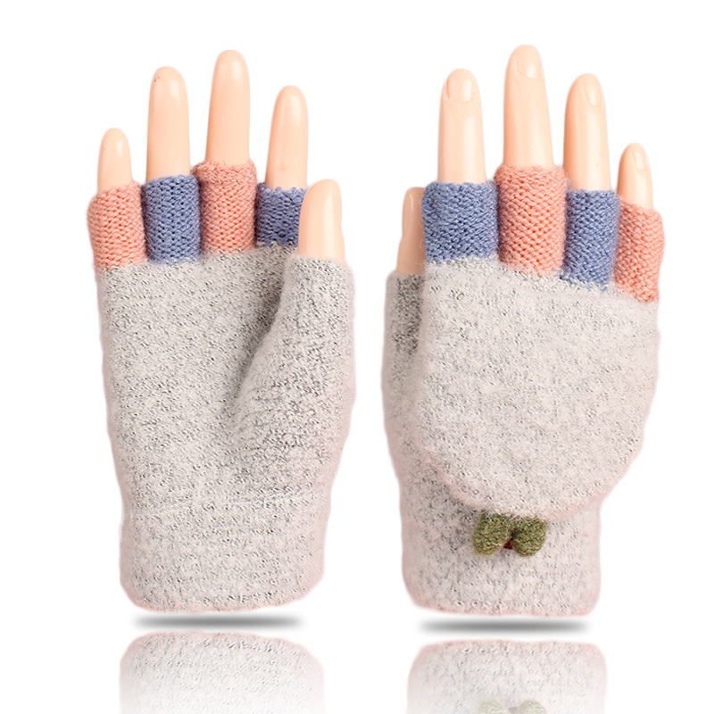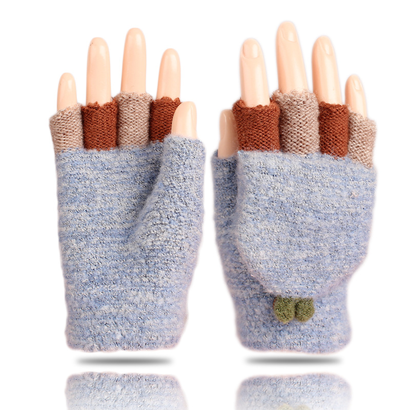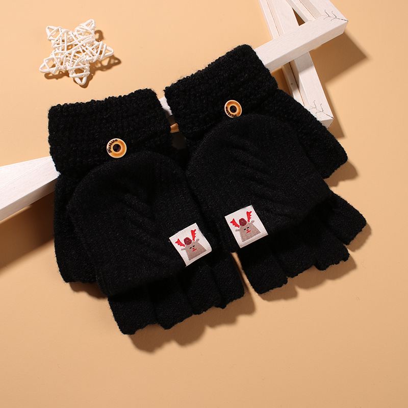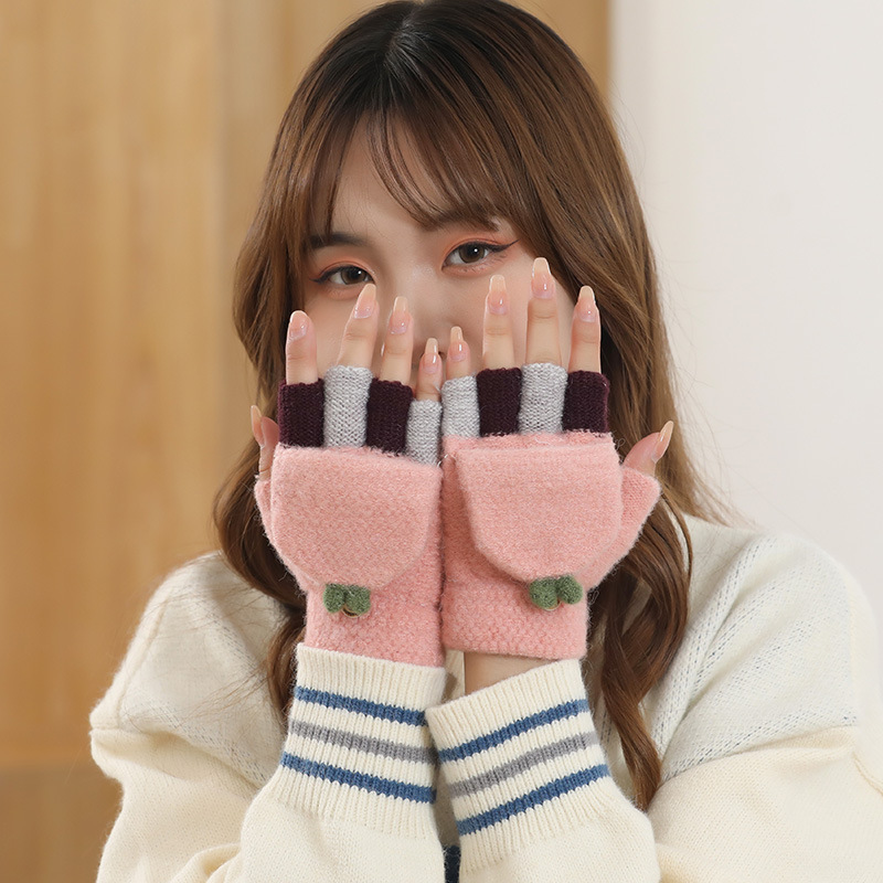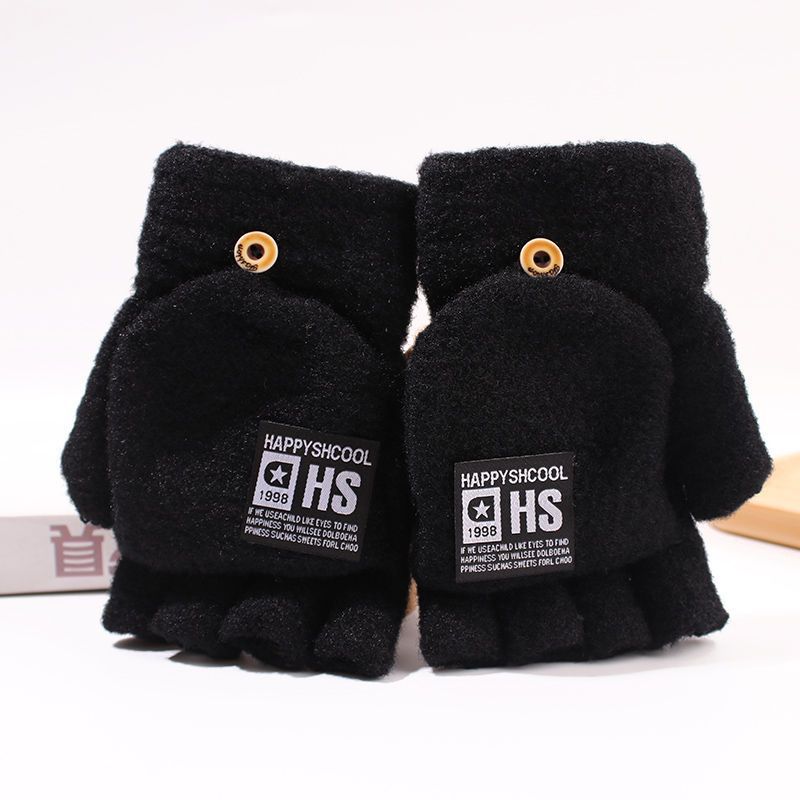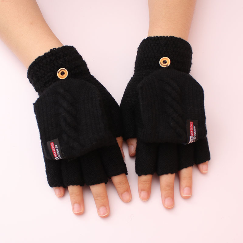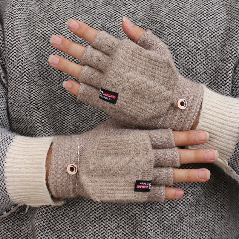 겨울 남자 학생 반 손가락 양모 니트 플립 장갑 사이클링 자카드 두껍게 쓰기