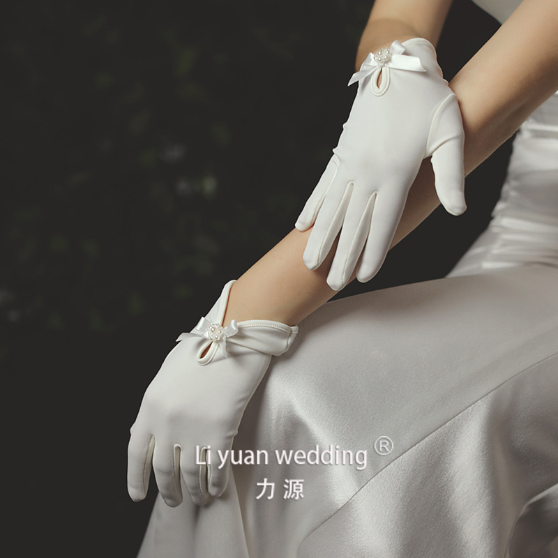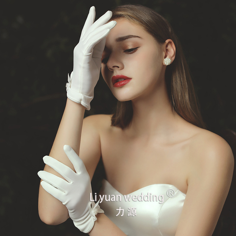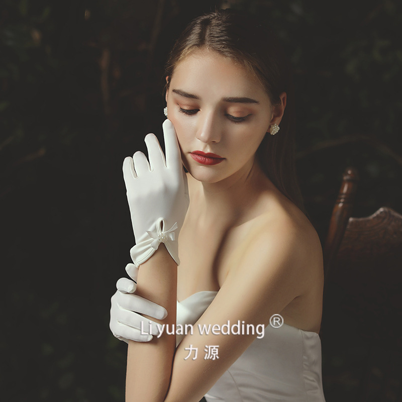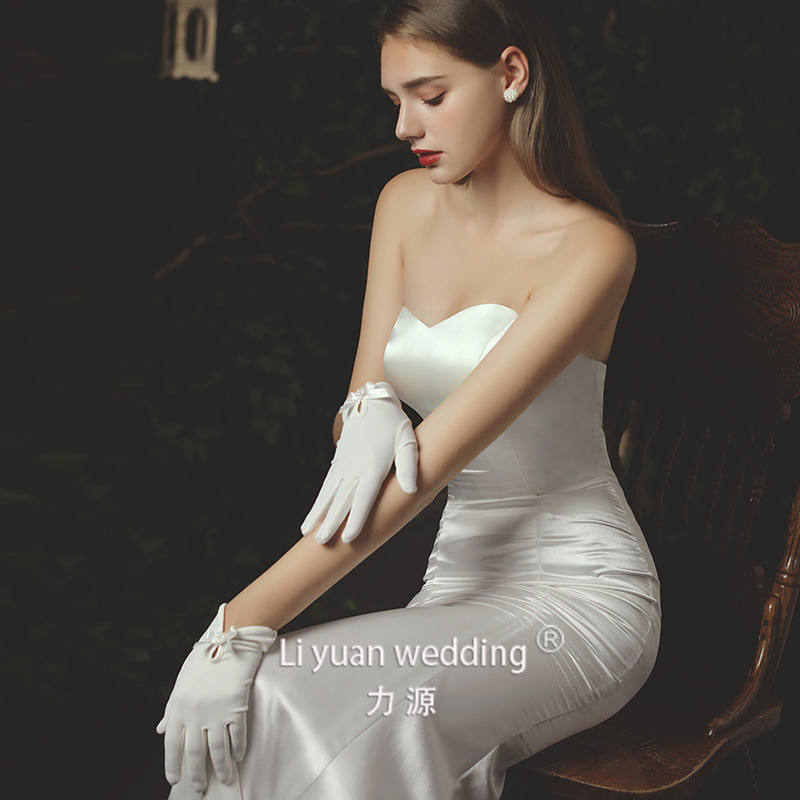 신부 결혼식 원피스 장갑 스트레치 새틴 사진 결혼식 파티 가을과 겨울 두꺼운 숙녀 우아한 파티 장갑스토어 가기