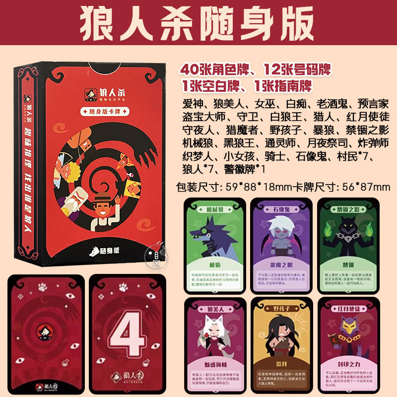 늑대 킬 휴대용 포켓 에디션 포커 스몰 사이즈 멀티 플레이어 파티 두뇌 굽기 게임 늑대 인간 테이블 게임