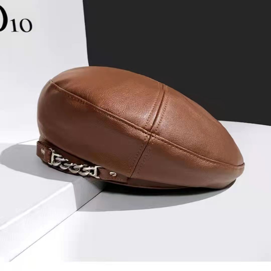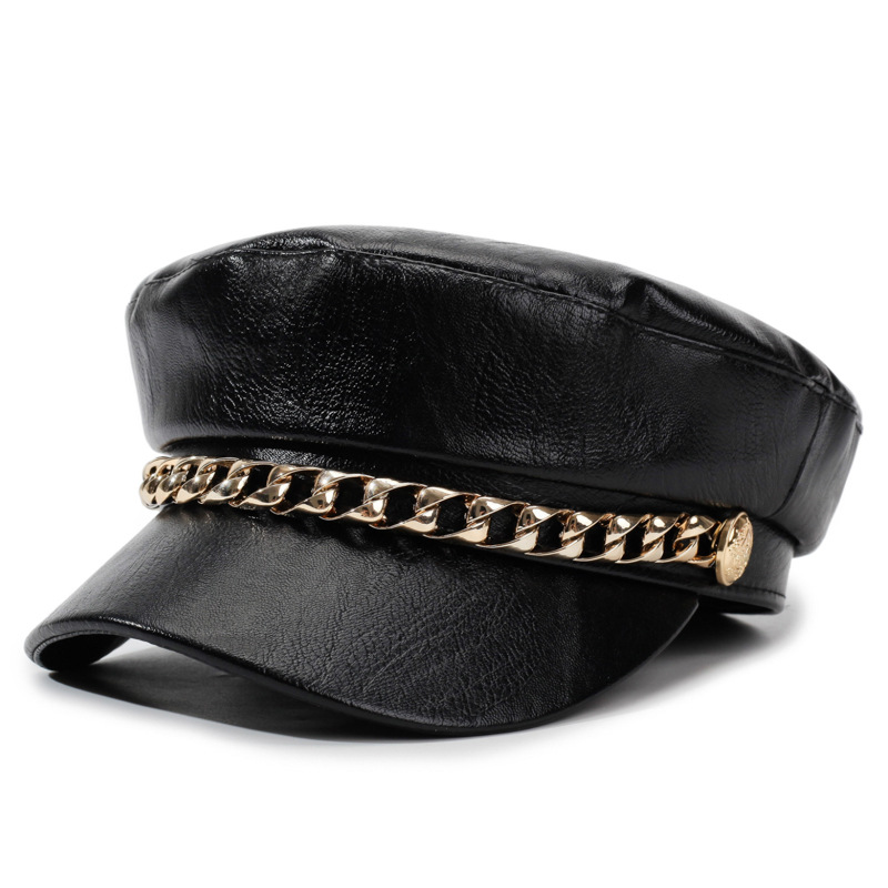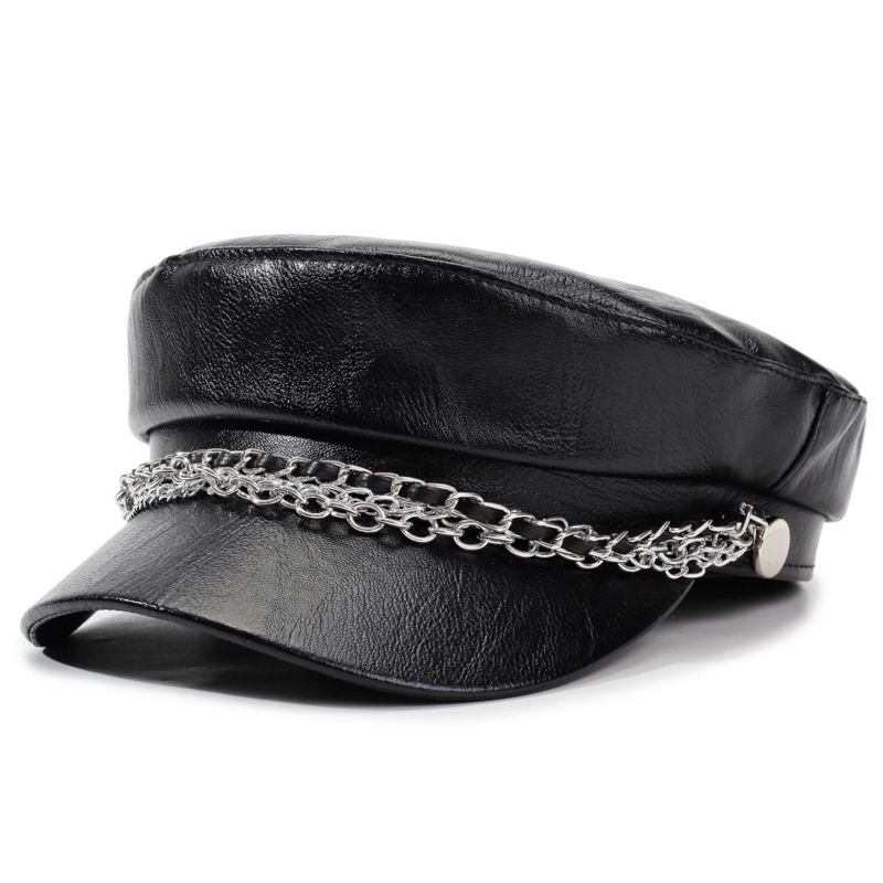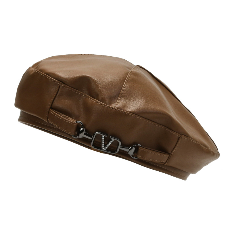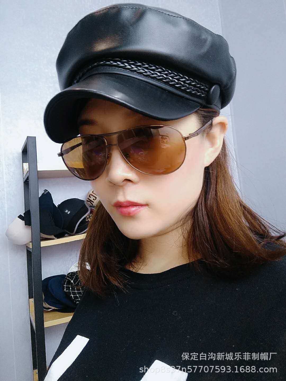 가을과 겨울 모자 여성 패션 베레모 한국 유행 블랙 네이비 모자 가을과 겨울 새로운 영국 여성 pu 팔각형 모자 얼굴 수리