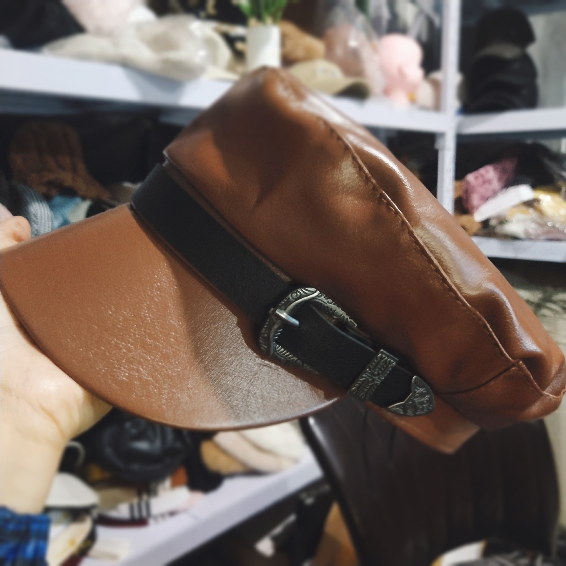 가을과 겨울 모자 여성 패션 베레모 한국 유행 블랙 네이비 모자 가을과 겨울 새로운 영국 여성 pu 팔각형 모자 얼굴 수리스토어 가기