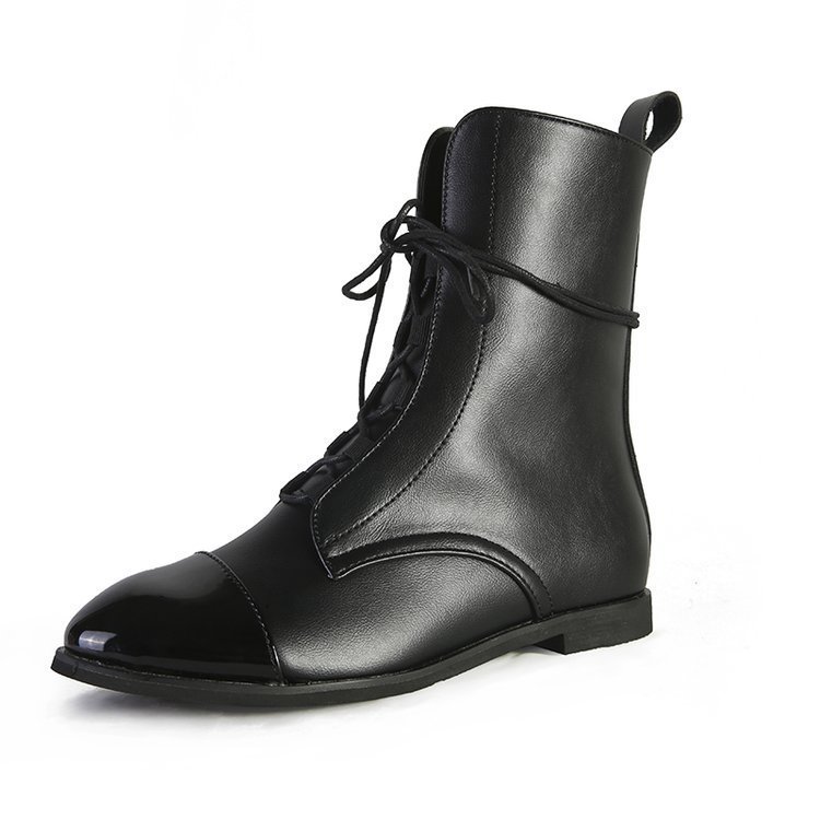 크로스 국경 대외 무역 플러스 사이즈 여성의 가죽 부츠 소원 뜨거운 판매 짧은 배럴 마틴 부츠 가을과 겨울 새로운 라운드 발가락 스트랩 여성 부츠